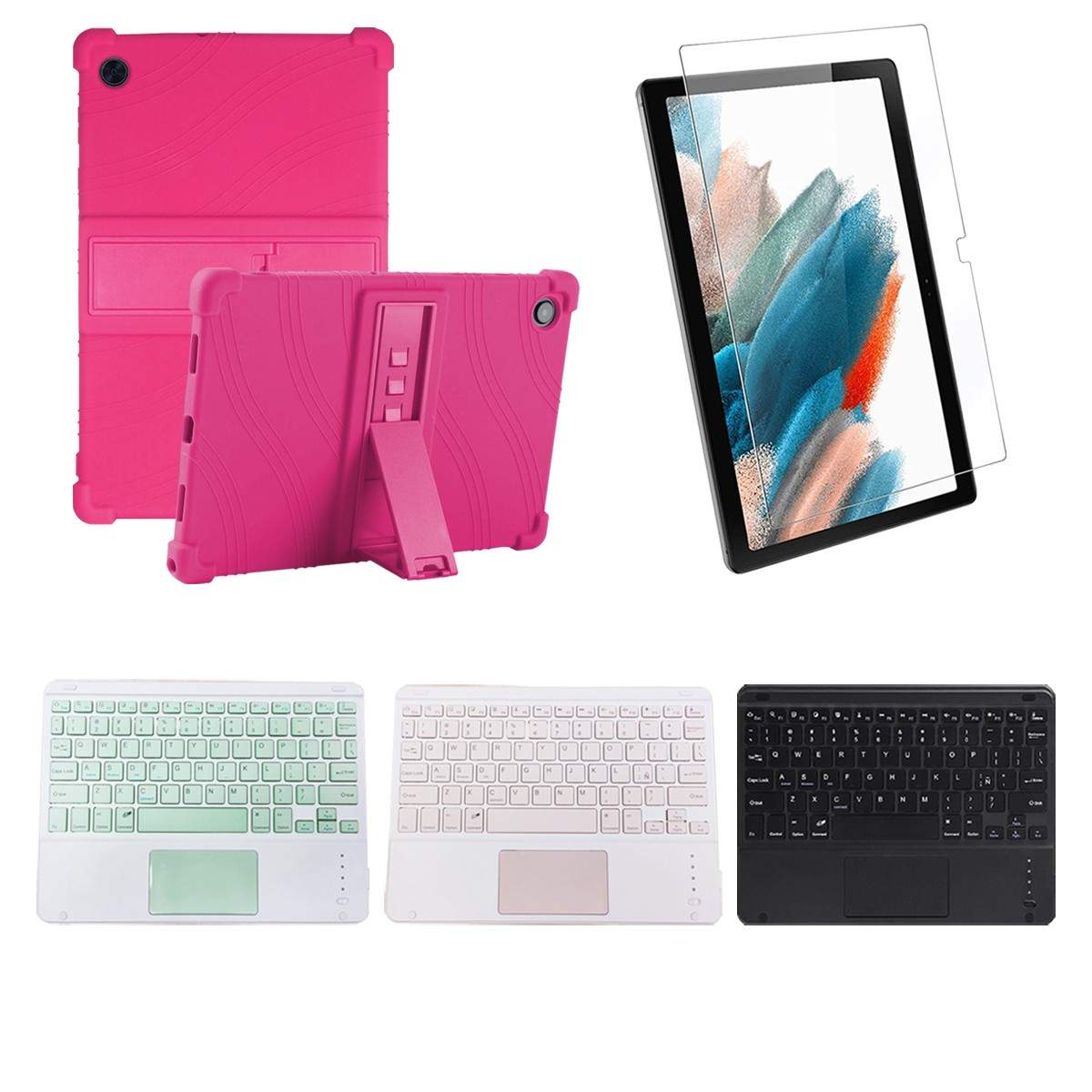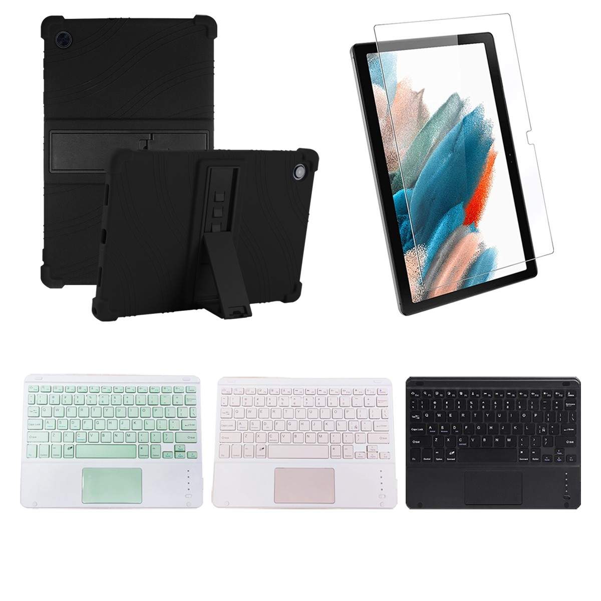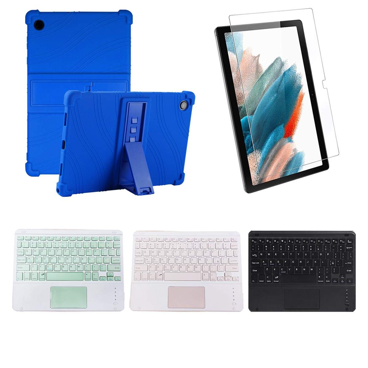 Kit Vidrio templado + Estuche Protector + Teclado Touchpad Bluetooth Tablet Samsung Galaxy Tab A8 10.5 2021 SM-x200, SM-x205