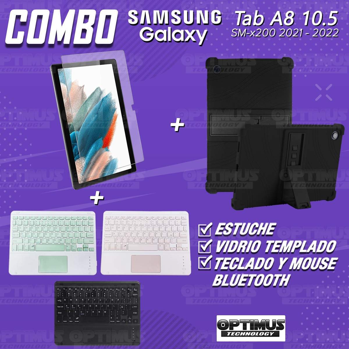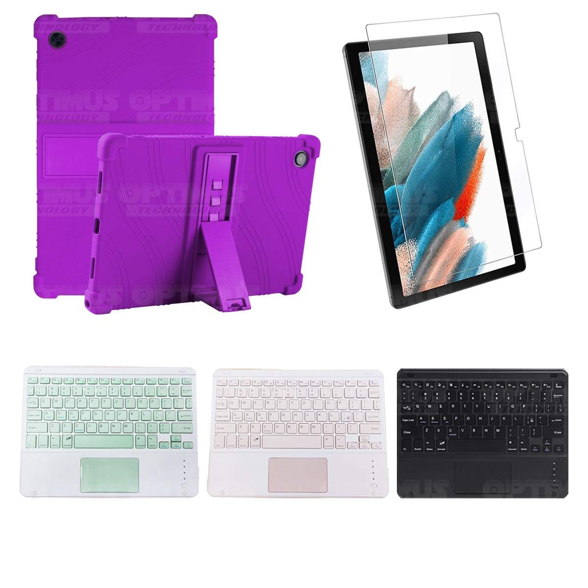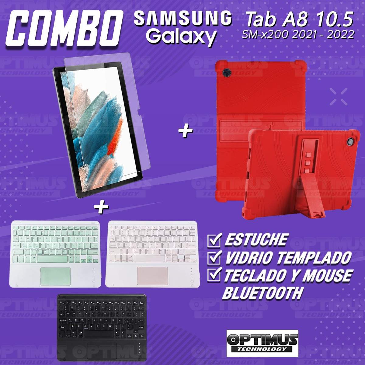 Los ¡Nuevos Kits de Estuche + Vidrio + Teclado + Mouse Touchpad Bluetooth de OPTIMUS™ Le brindan a tu Tablet una alta protección y funcionalidad completa!