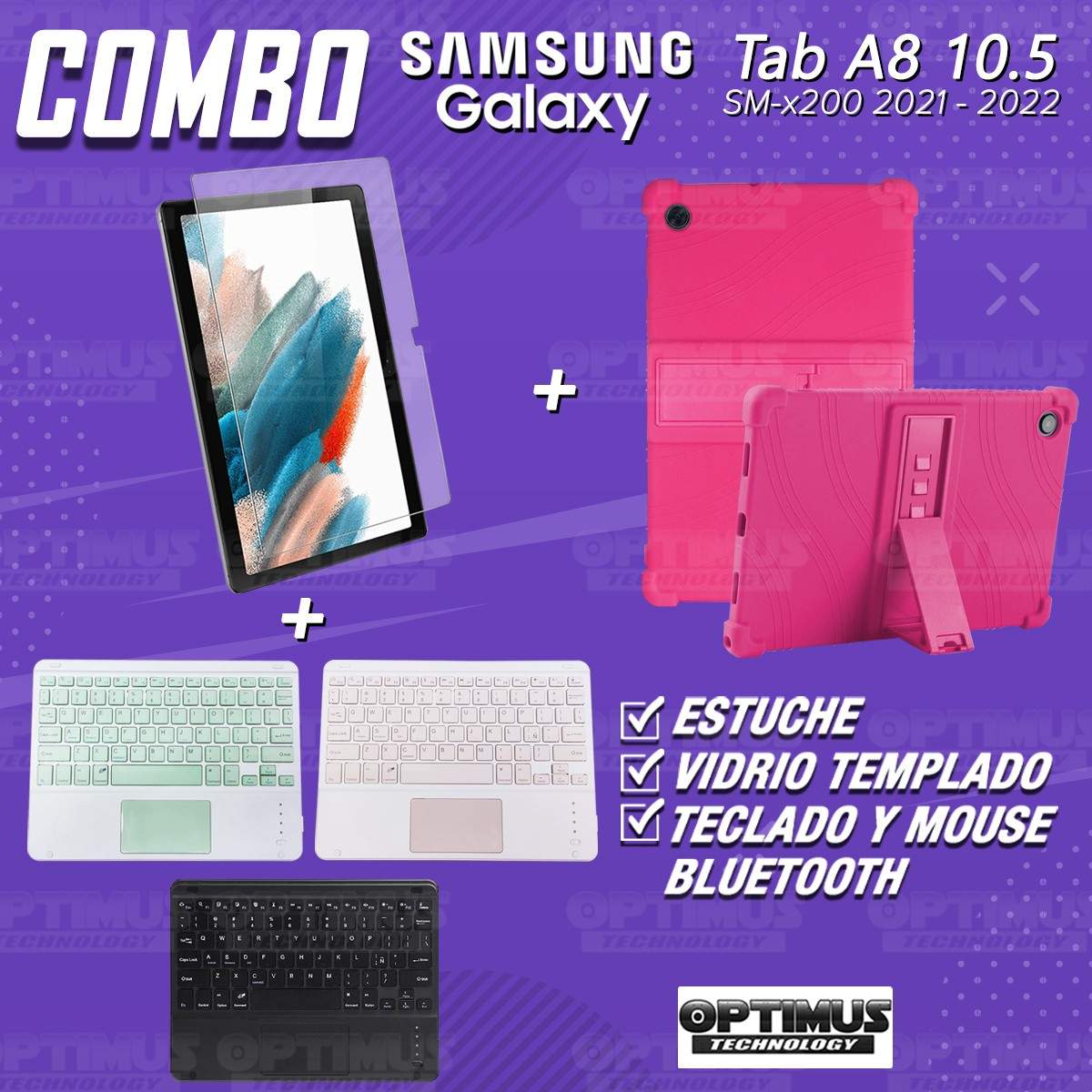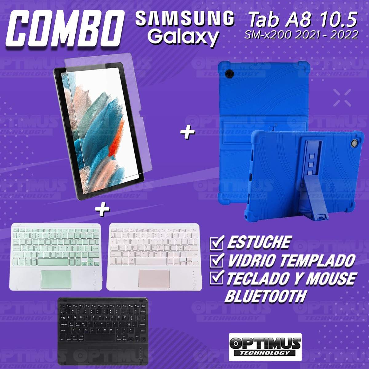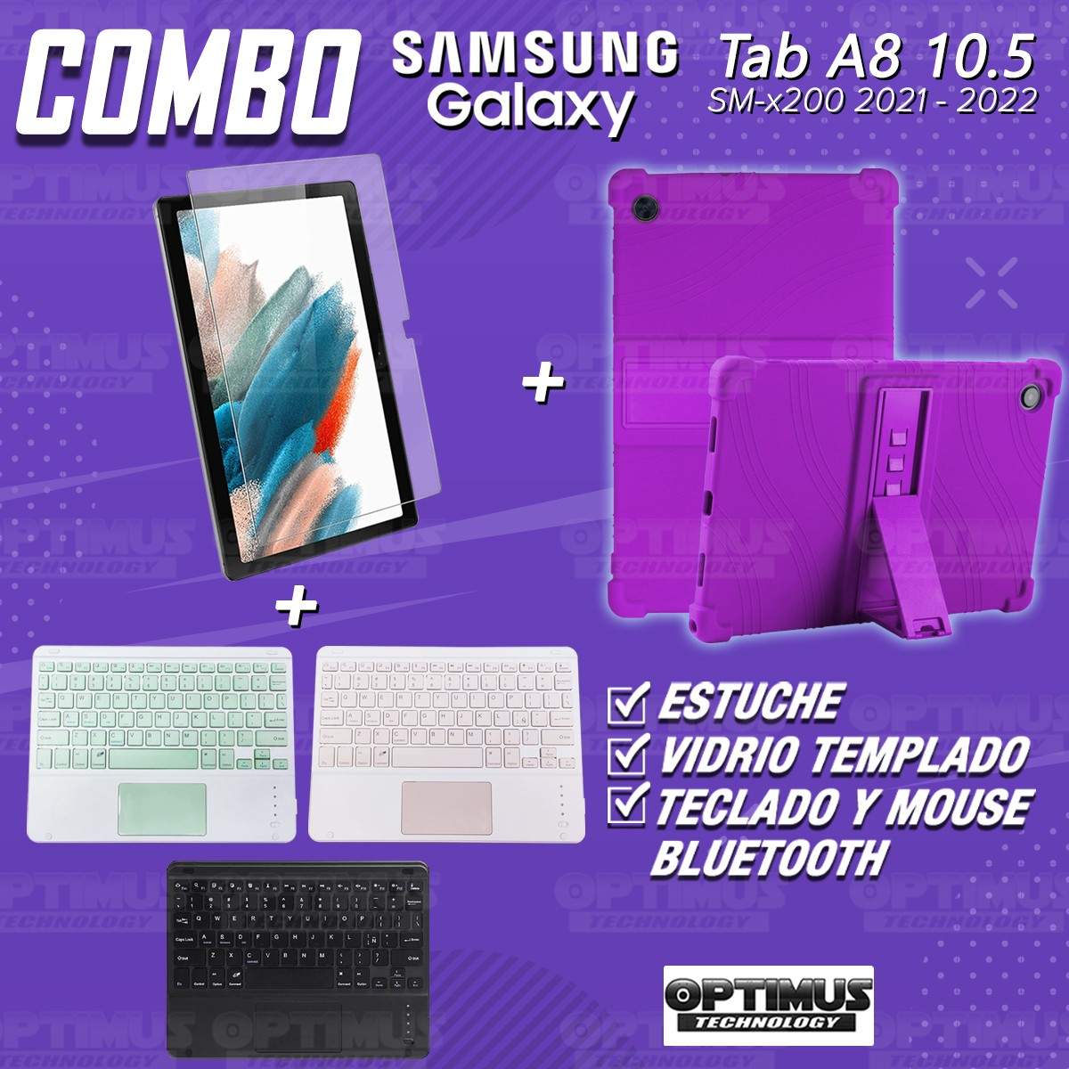 Los ¡Nuevos Kits de Estuche + Vidrio + Teclado + Mouse Touchpad Bluetooth de OPTIMUS™ Le brindan a tu Tablet una alta protección y funcionalidad completa!