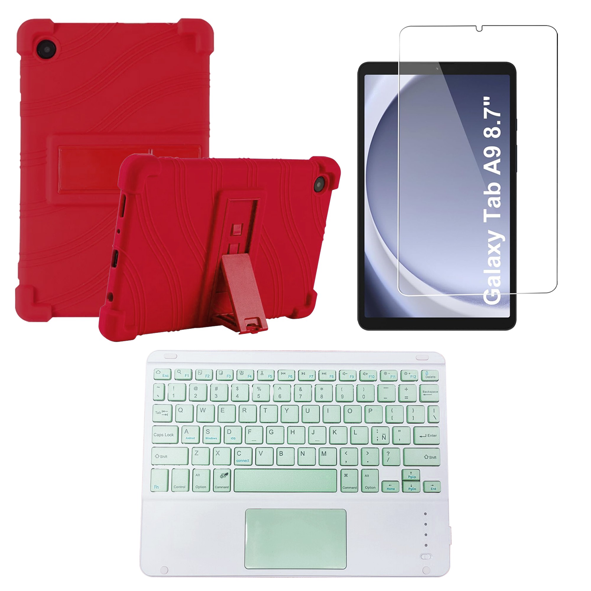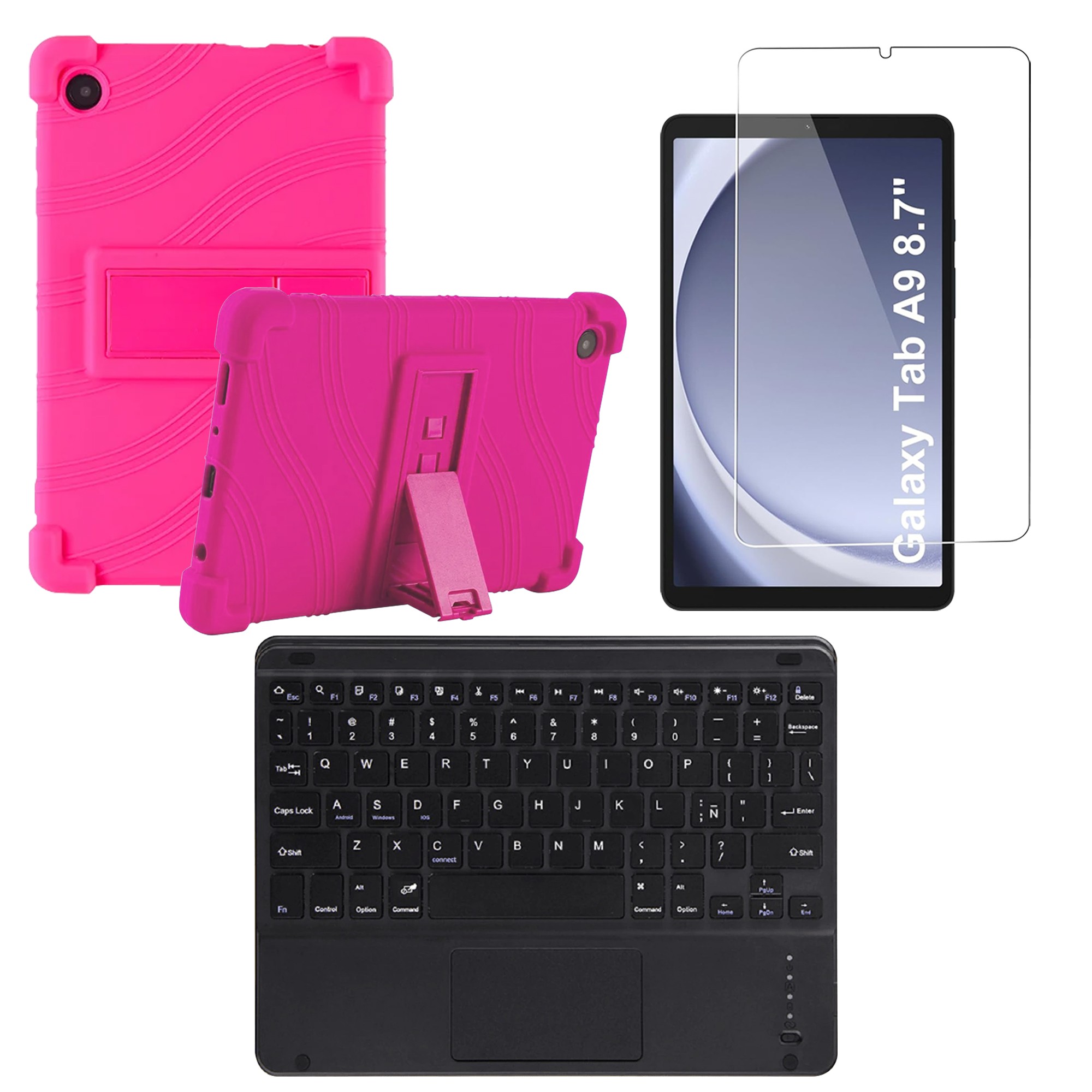 Kit Vidrio templado + Estuche Protector + Teclado Touchpad Bluetooth Tablet Samsung Galaxy Tab A9 8.7 Pulgadas SM-X110 / X115