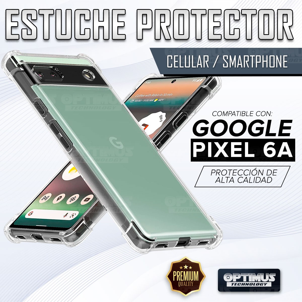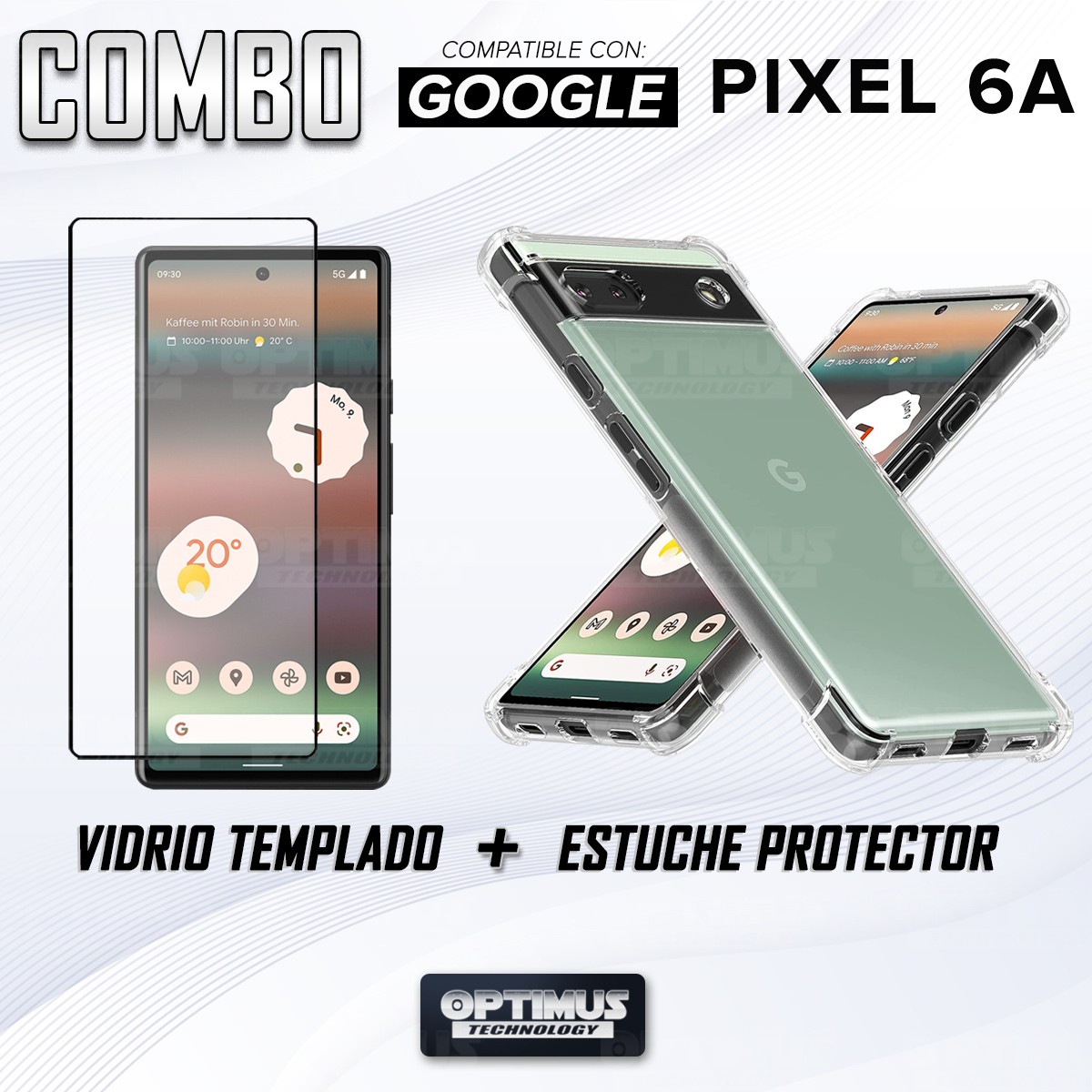 Kit Vidrio templado y Estuche Case Forro Protector Anticaída para celular Google Pixel 6A 5G 2022