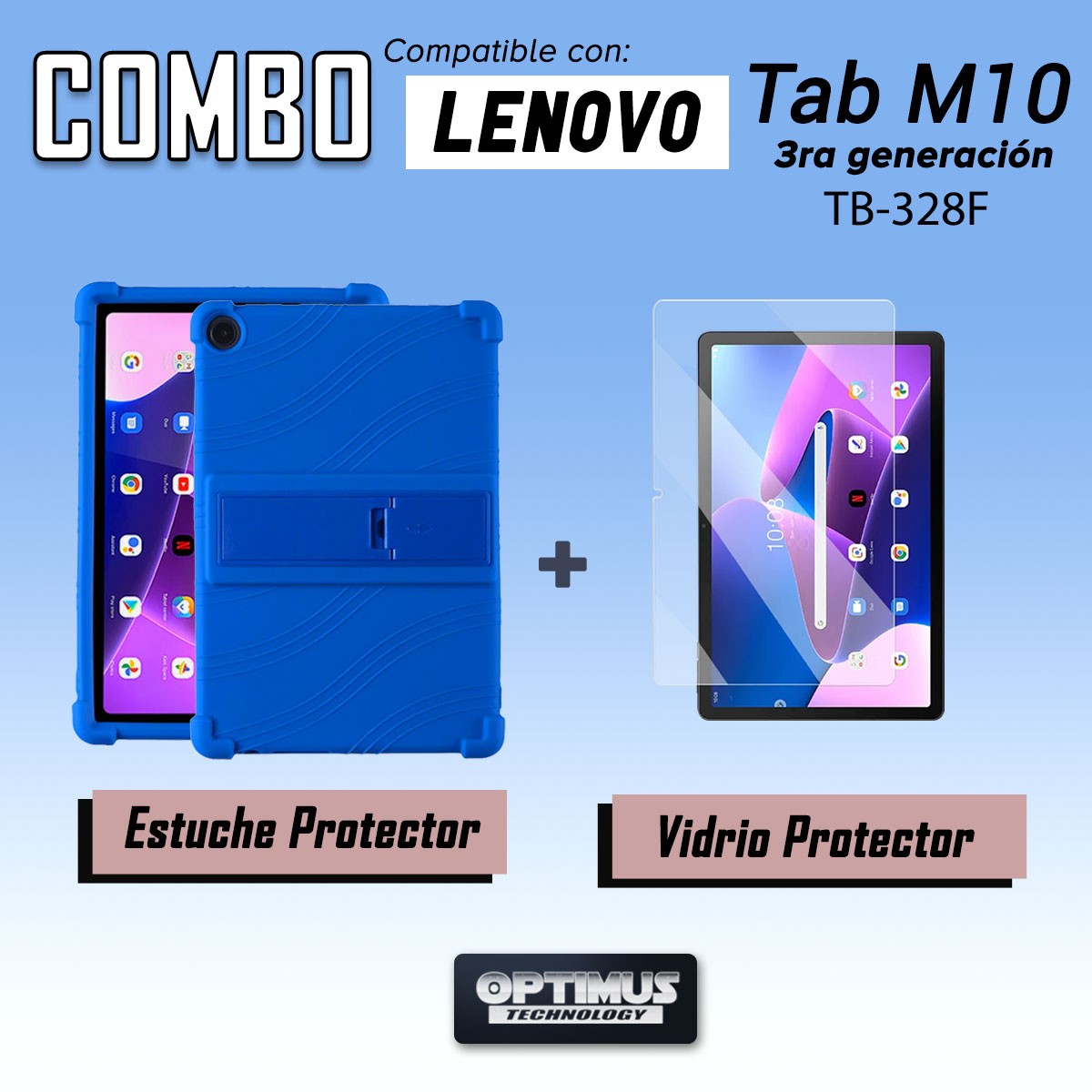 Kit Vidrio templado y Estuche Protector antigolpes con soporte para Tablet Lenovo M10HD 3rd Generacion TB-328 2022 10.1 Pulgadas