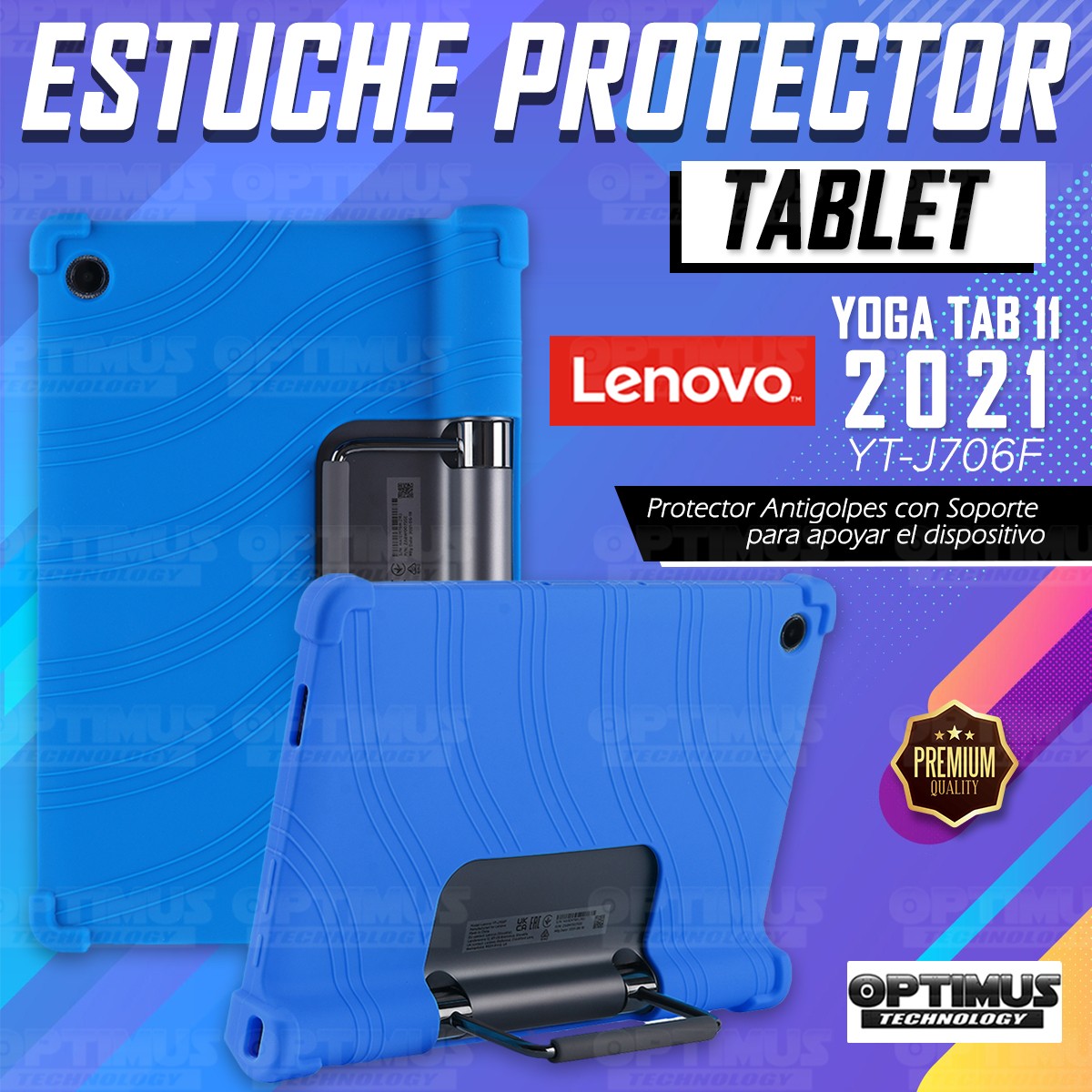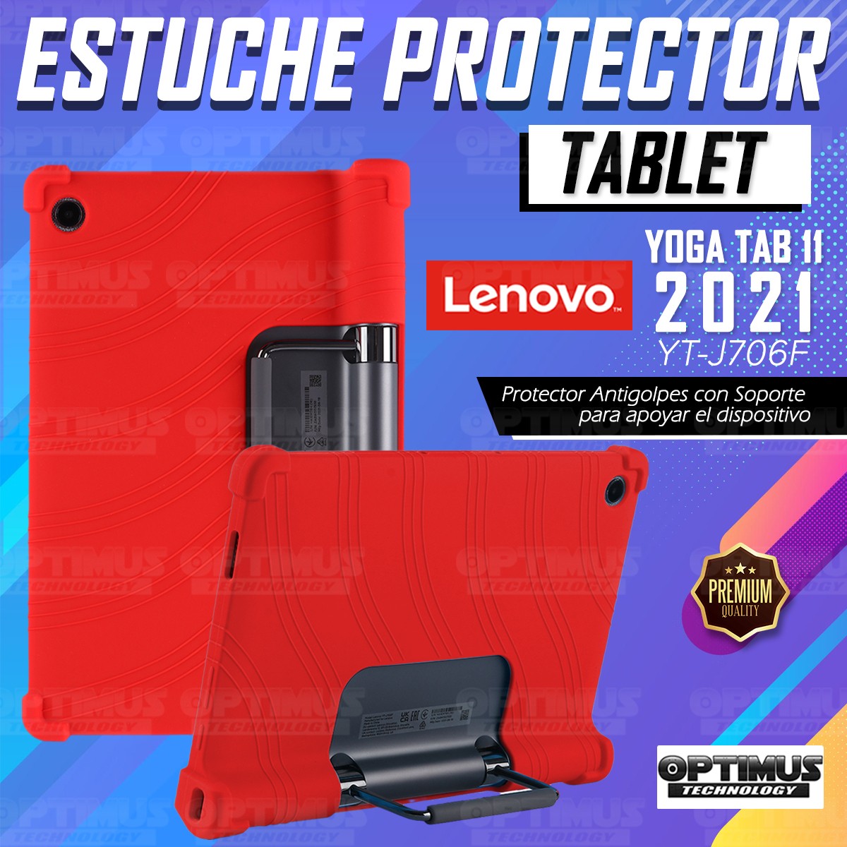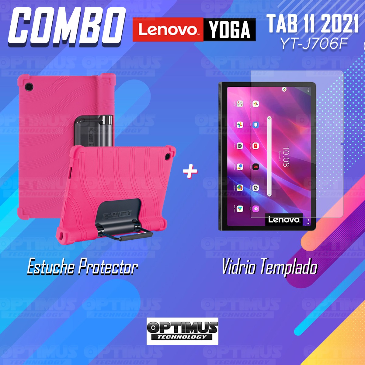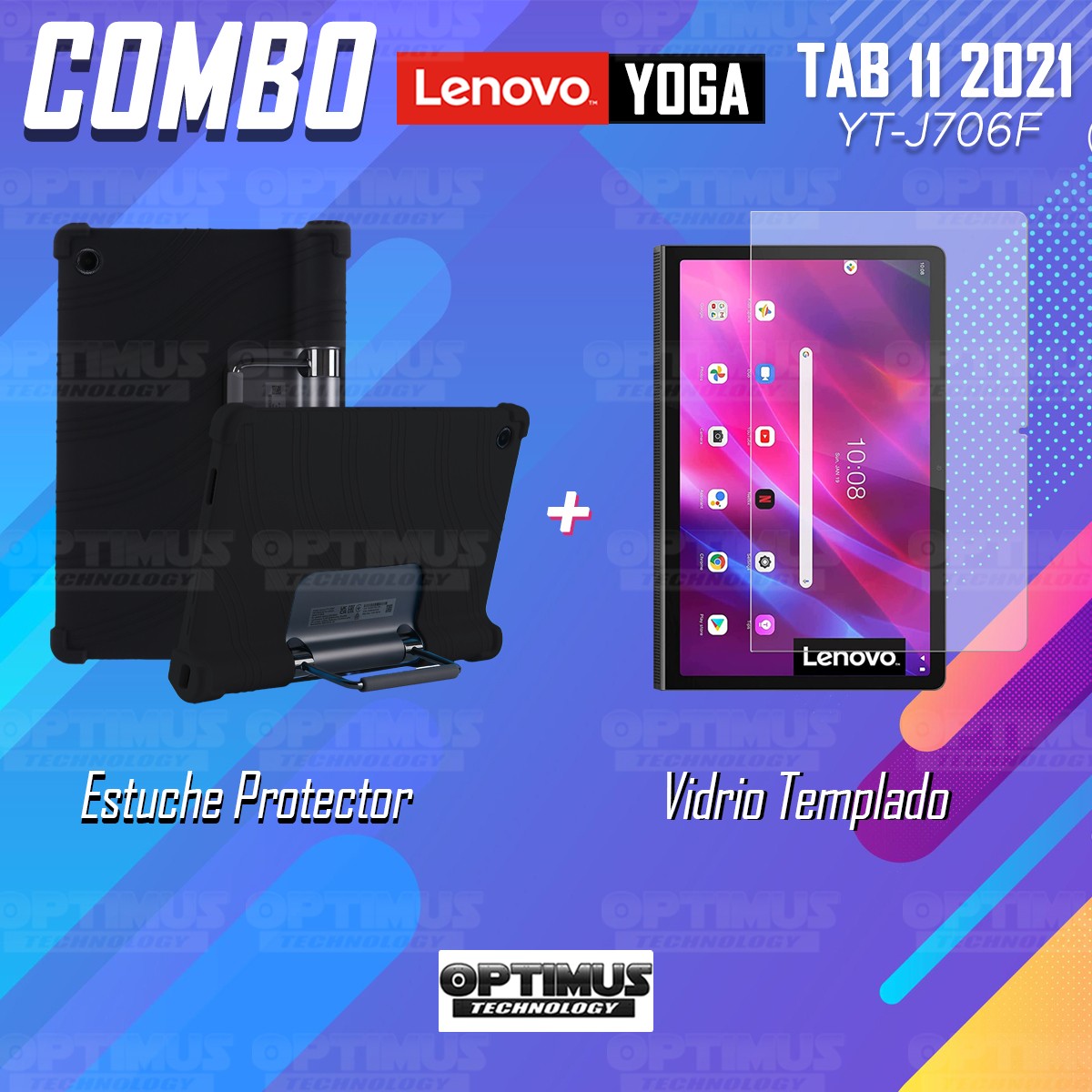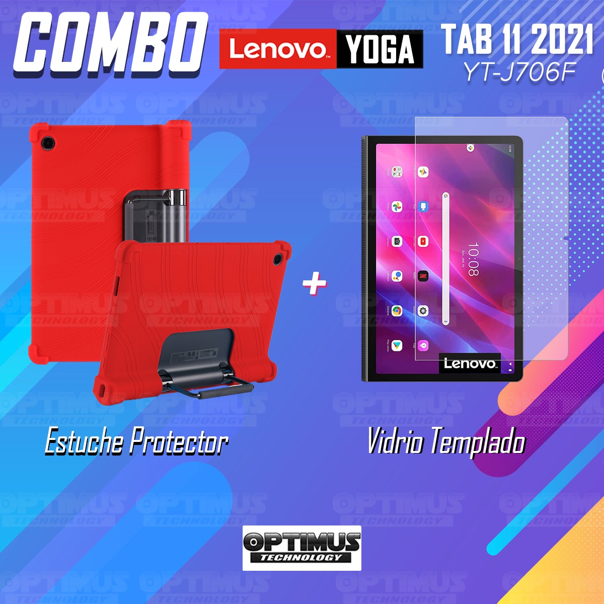 Kit Vidrio templado y Estuche Protector de goma antigolpes con soporte Tablet Lenovo Yoga Tab 11 2021 YT-J706F