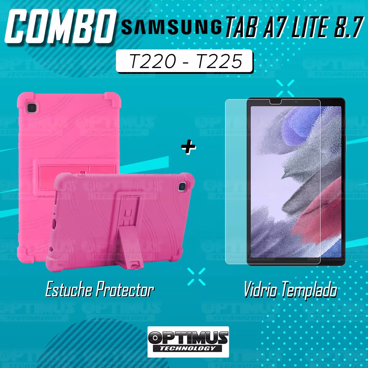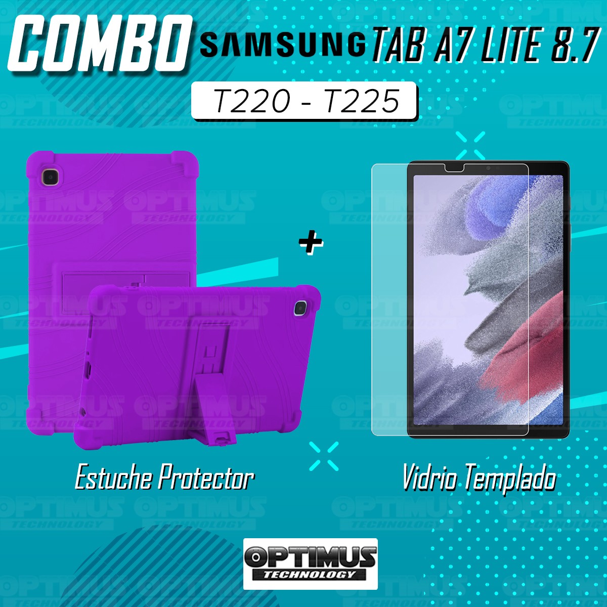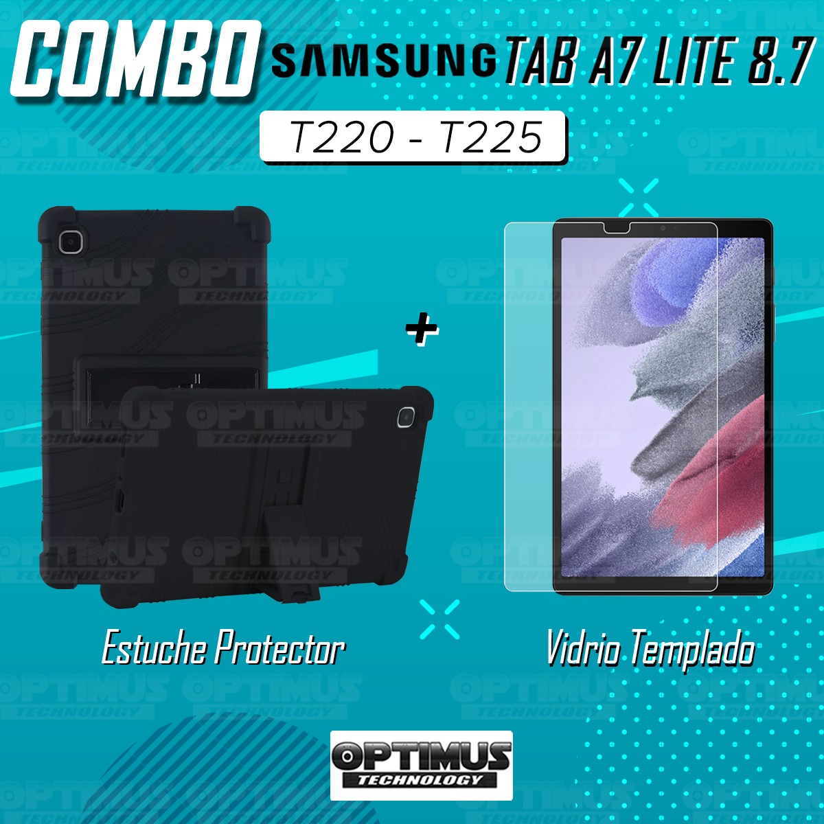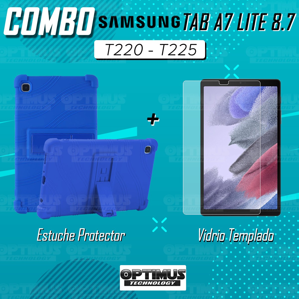 Kit Vidrio Cristal Templado Y Estuche Case Protector para Tablet Samsung Galaxy Tab A7 Lite 8.7 2021 T220 - T225 OPTIMUS TECHNOL