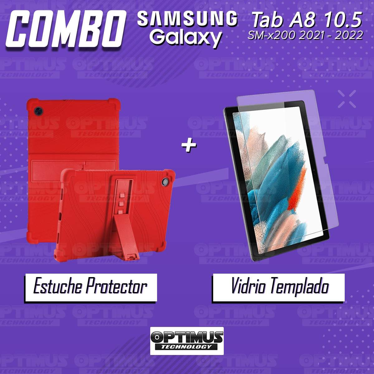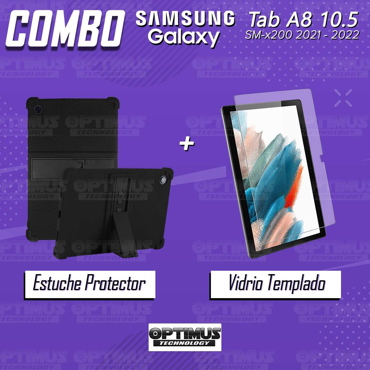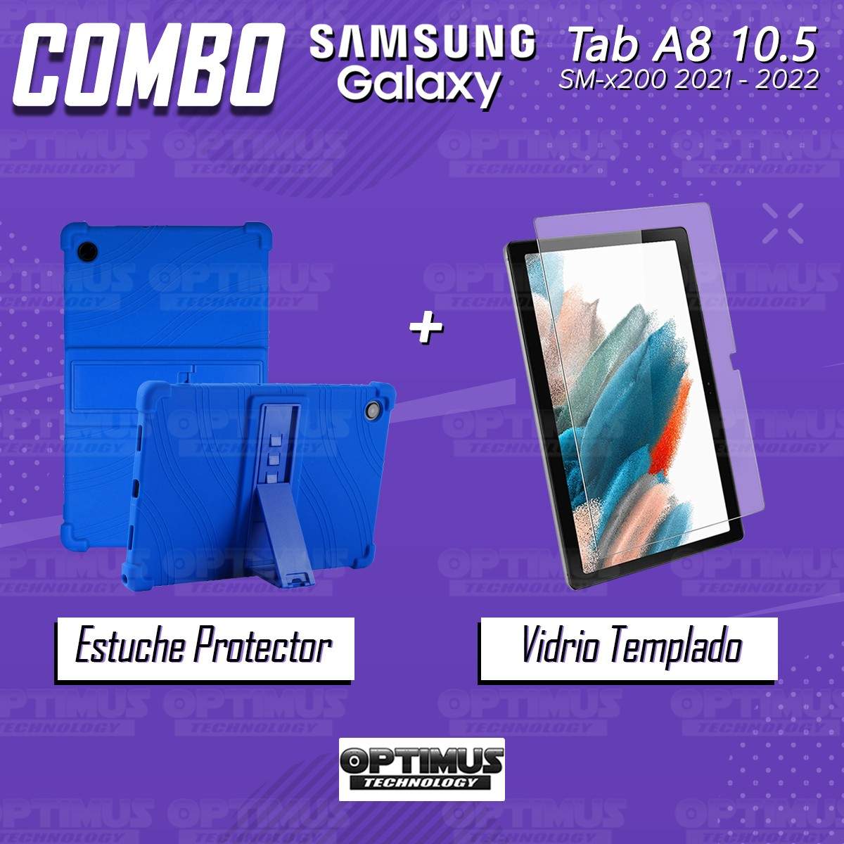 Kit Vidrio templado y Estuche Protector de goma antigolpes con soporte Tablet Samsung Galaxy Tab A8 10.5 2021 SM-x200, SM-x205