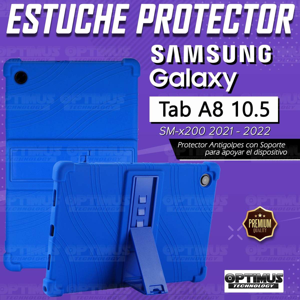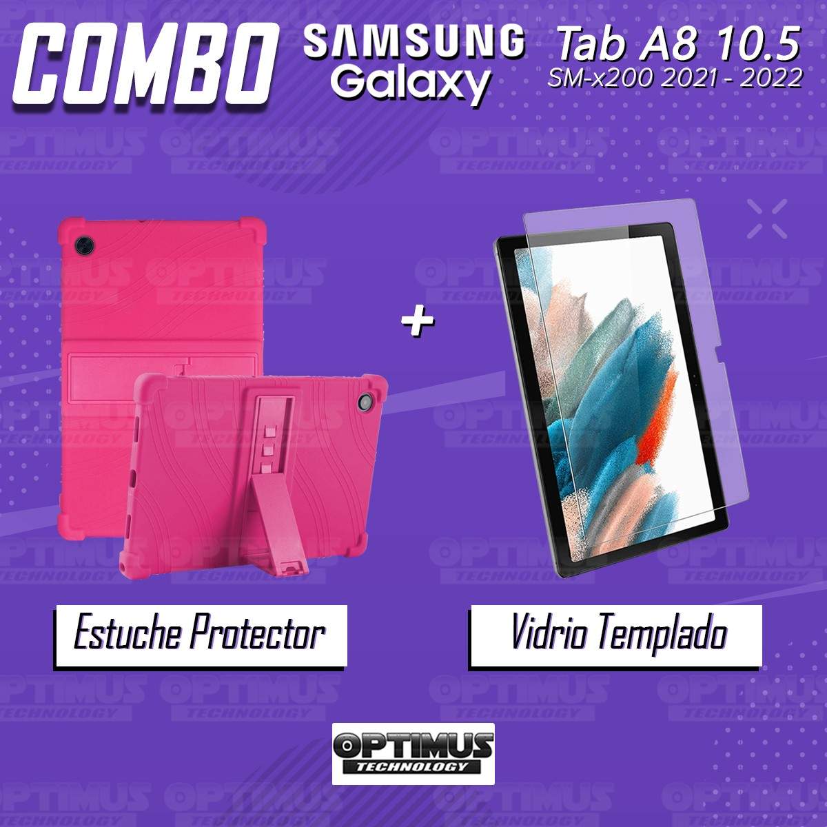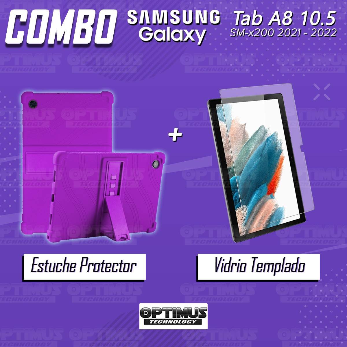 Kit Vidrio templado y Estuche Protector de goma antigolpes con soporte Tablet Samsung Galaxy Tab A8 10.5 2021 SM-x200, SM-x205