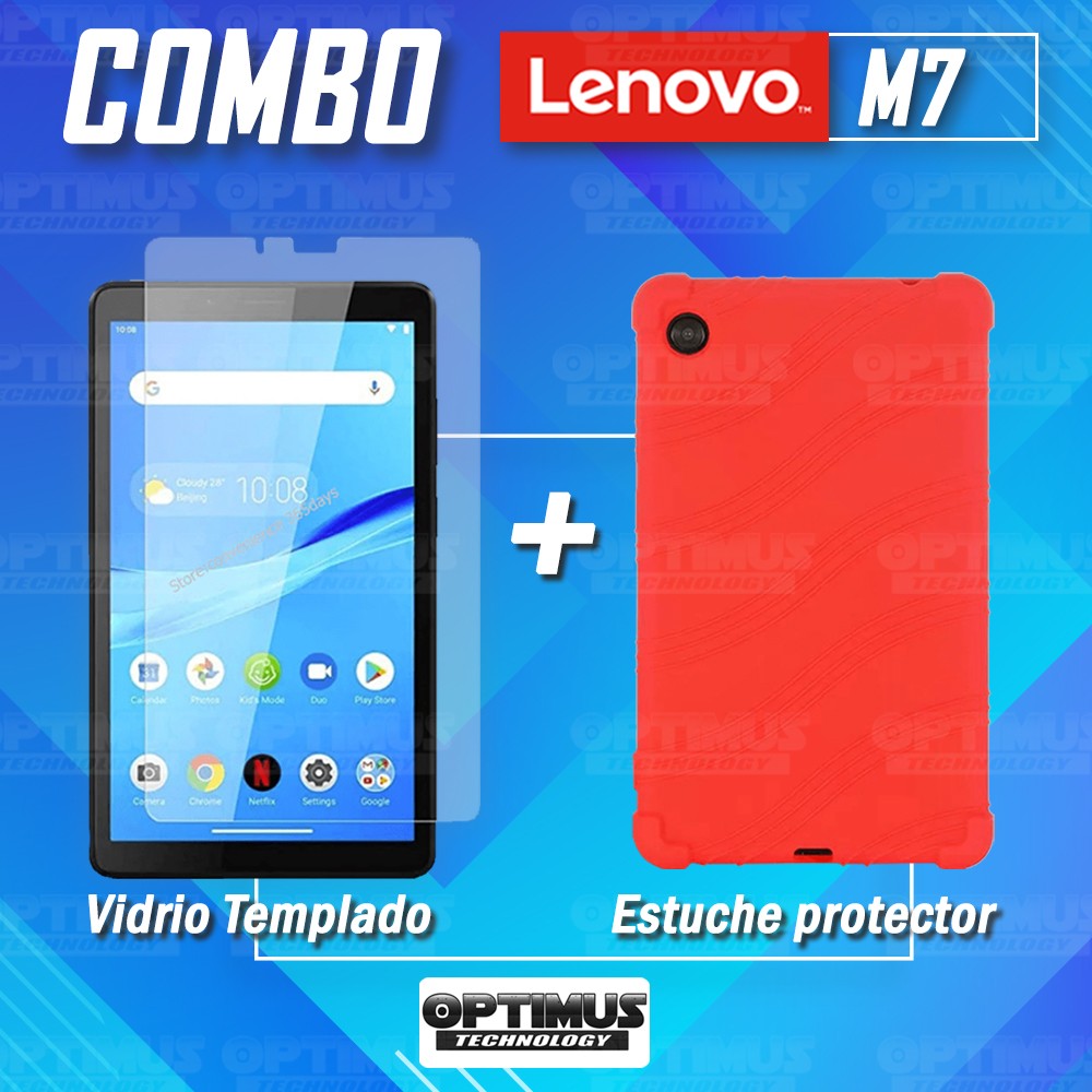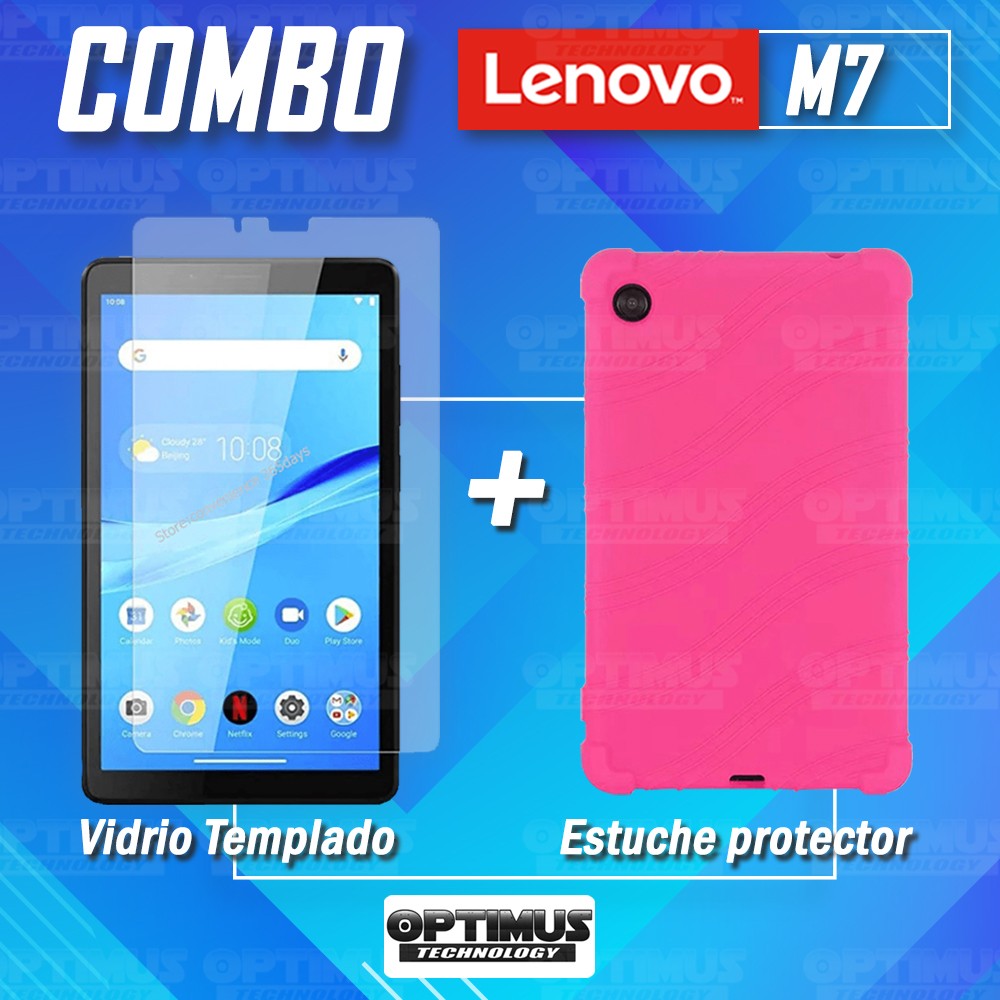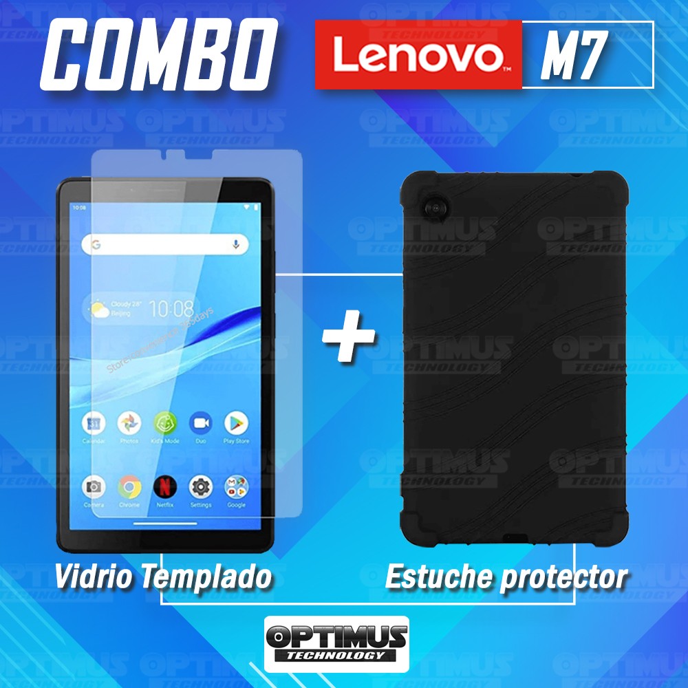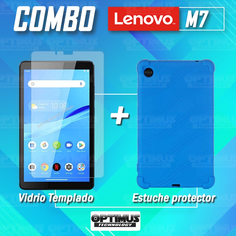 Kit Vidrio templado y Estuche Protector de goma antigolpes Tablet Lenovo M7 7305x