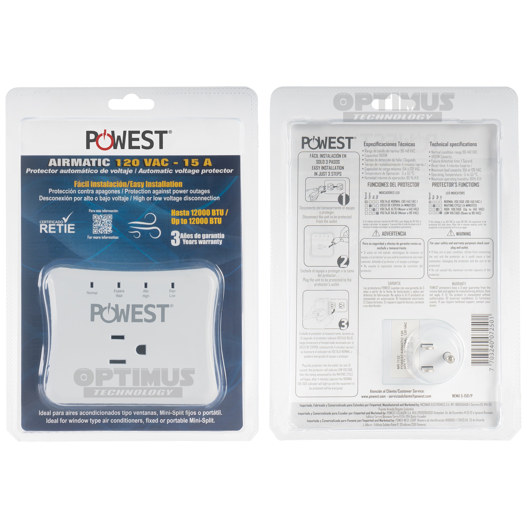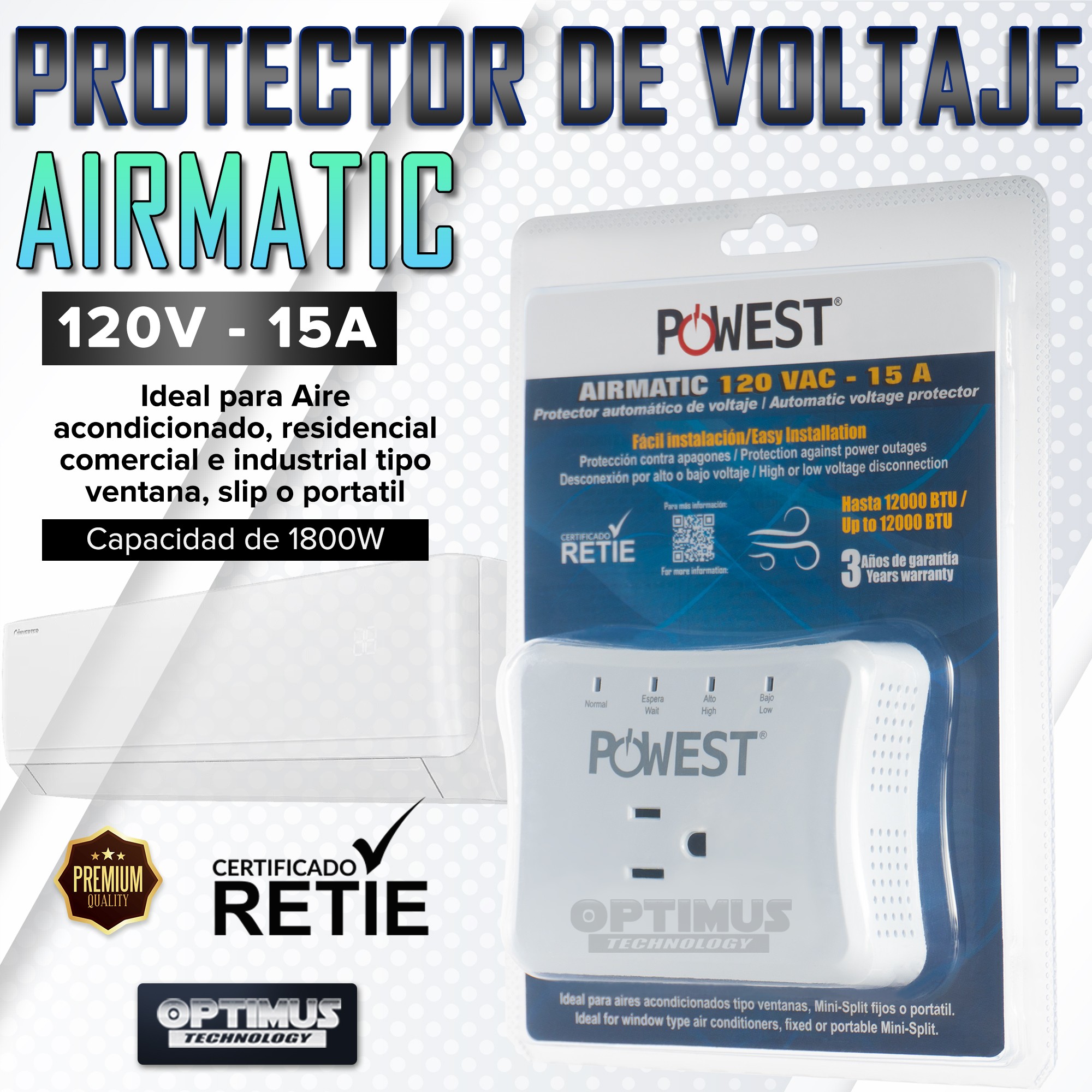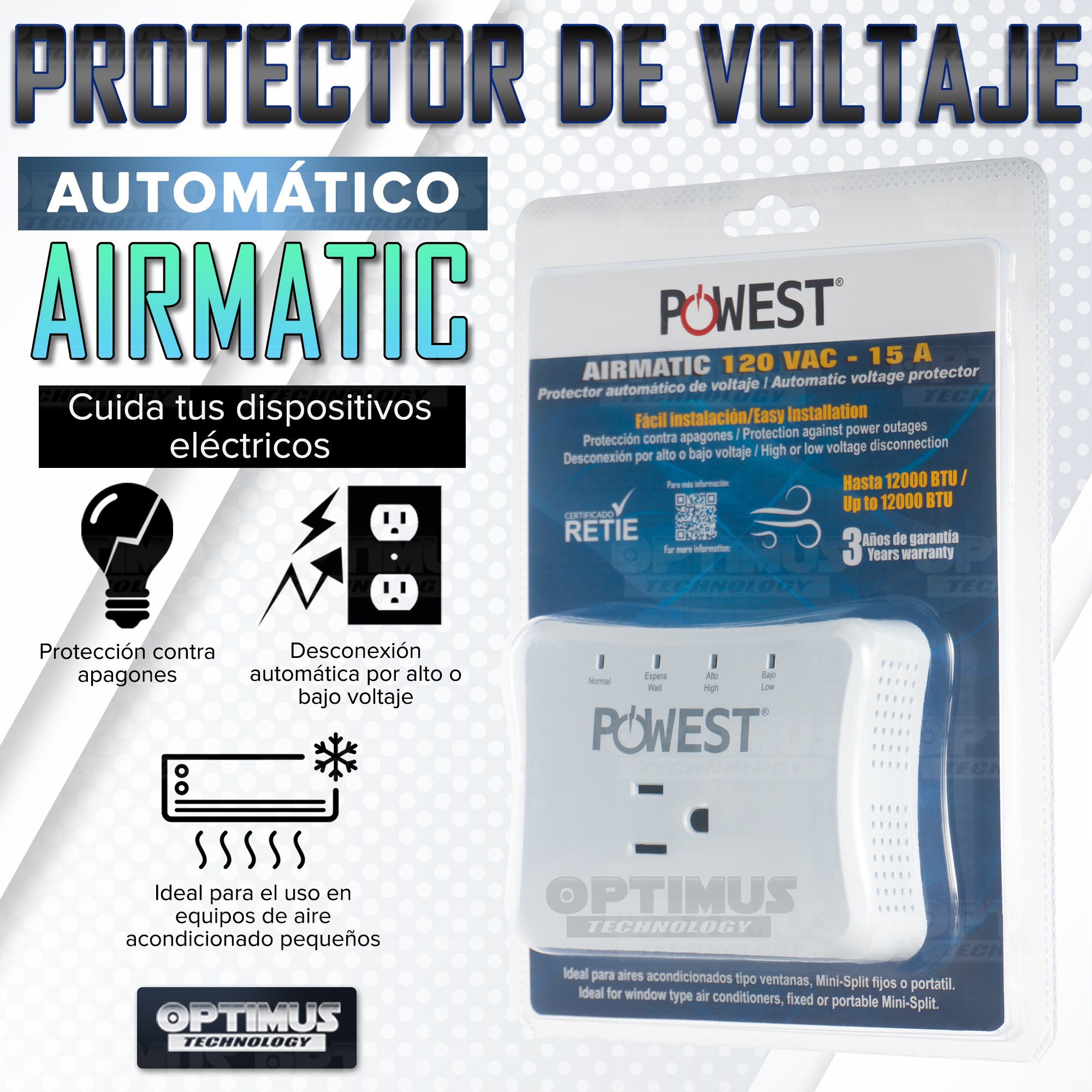 x1 Protector de Voltaje AIRMATIC 120V – 15A OPTIMUS™