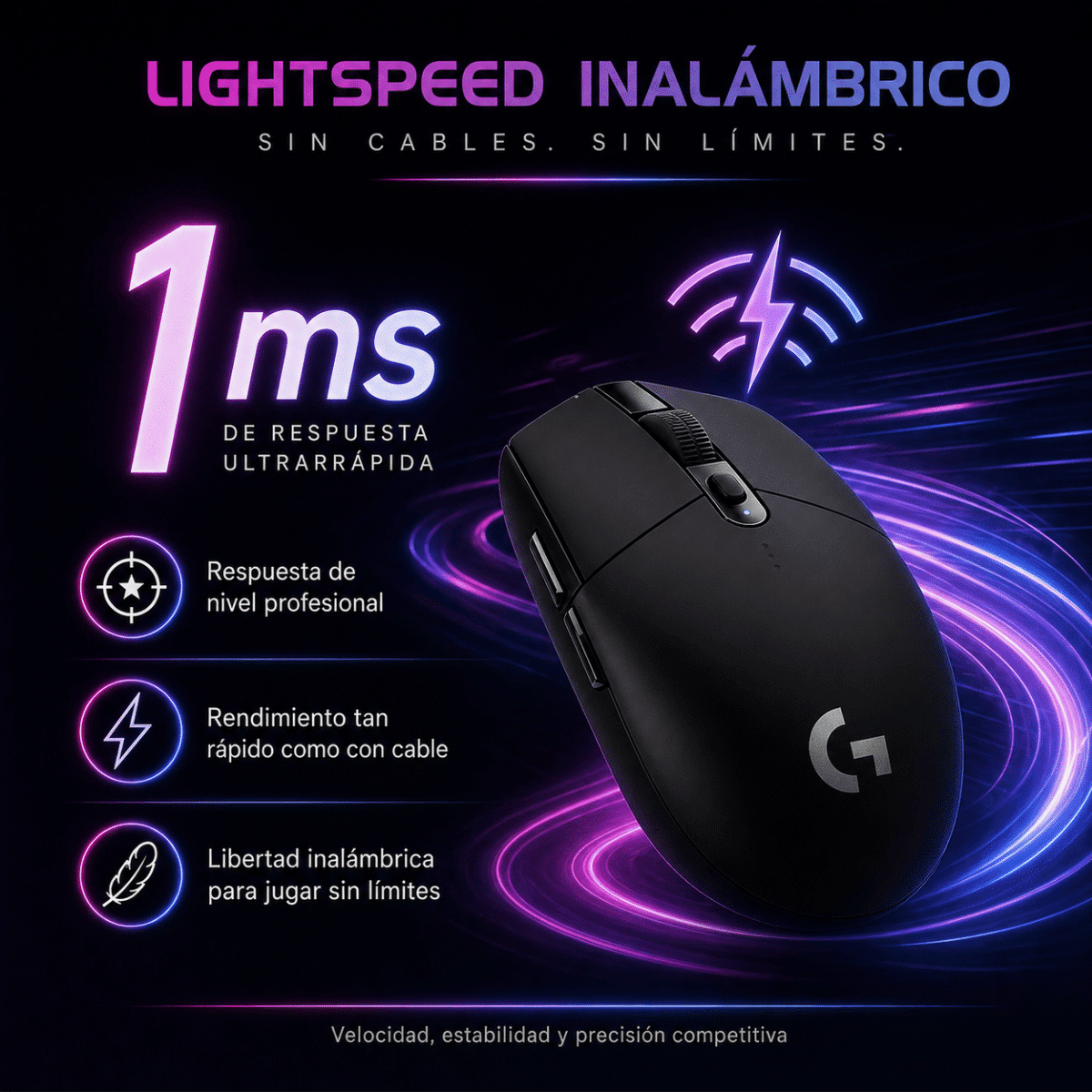Tecnología inalámbrica diseñada para ofrecer una respuesta ultrarrápida, estable y tan confiable como una conexión con cable.