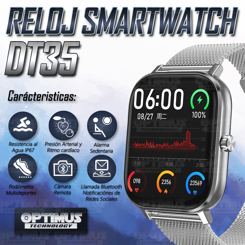 Los ¡Nuevos Relojes Inteligentes Smartwatch DT35 de OPTIMUS™ tienen múltiples funciones que cuidan al máximo tu salud como frecuencia cardíaca, Presión Arterial, Modos deportivos y muchas funciones más!