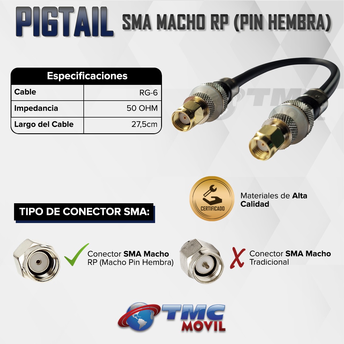 – x1 Conector PIGTAIL SMA Macho RP a SMA Macho RP TMC MÓVIL™