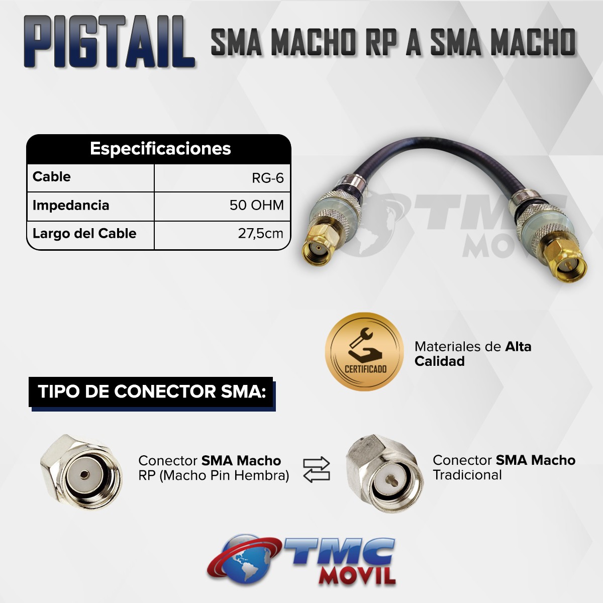 x1 Conector PIGTAIL SMA Macho RP a SMA Macho TMC MÓVIL™