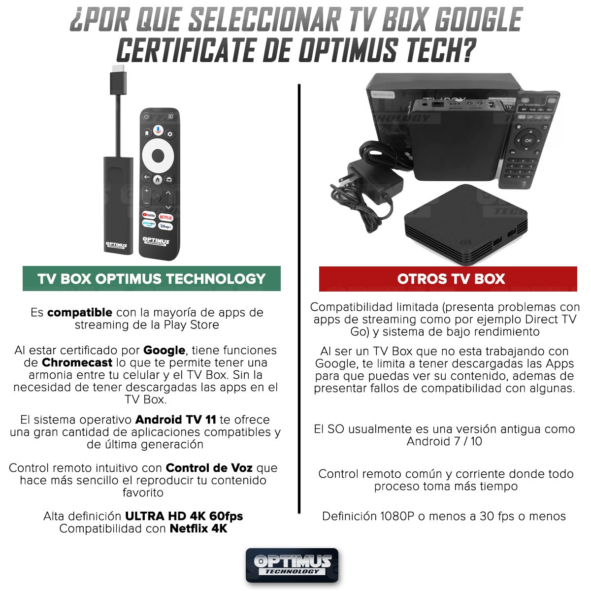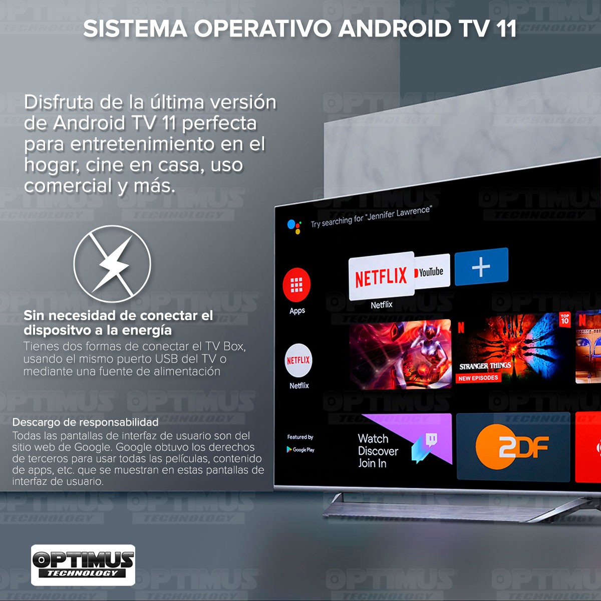 ¡Nuevo TV Box Android TV 11 OPTIMUS TV™! convierte tu televisor a Smart TV con funciones añadidas. Alta calidad de imagen 4K HDR Ultra HD, Dolby audio, con Chromecast incluido