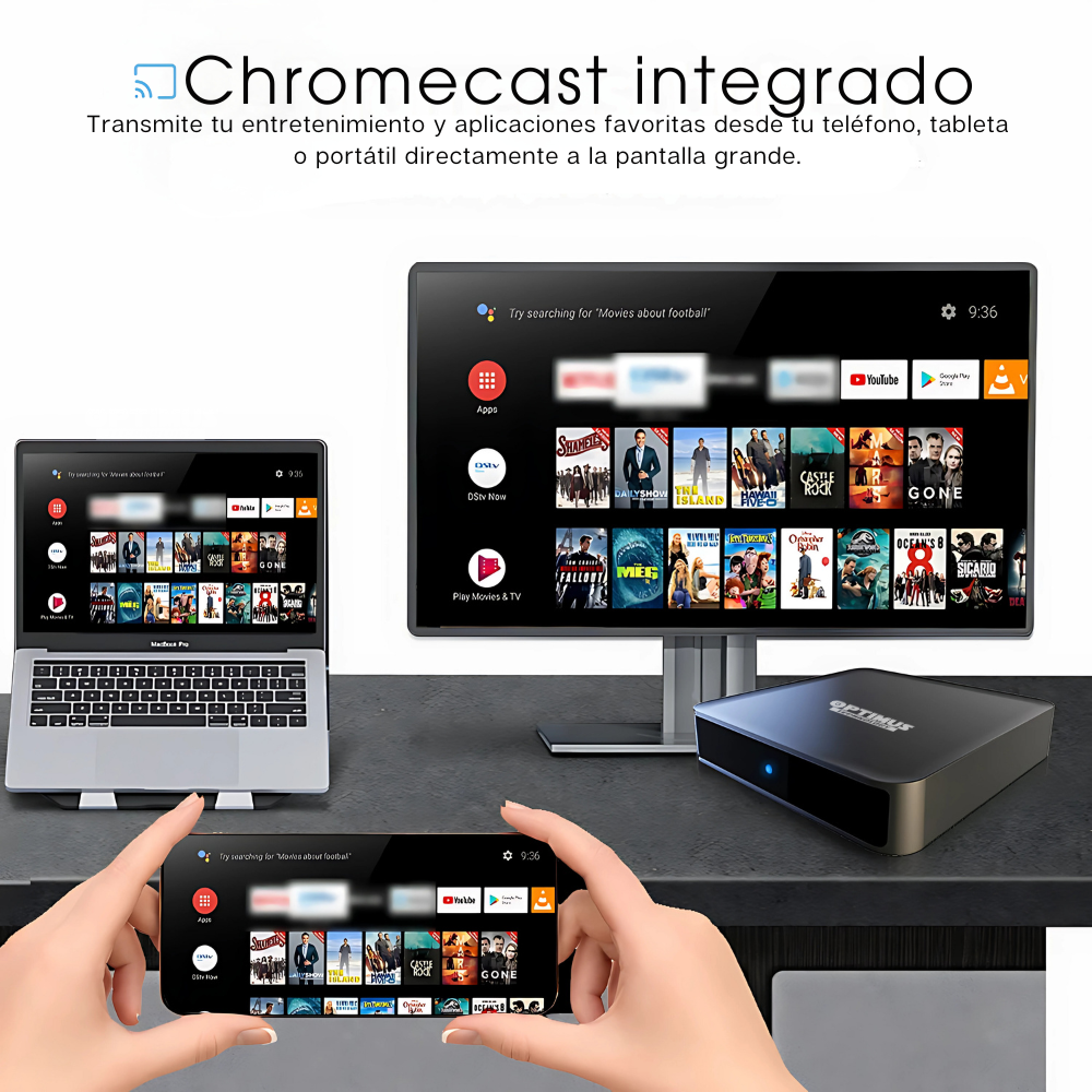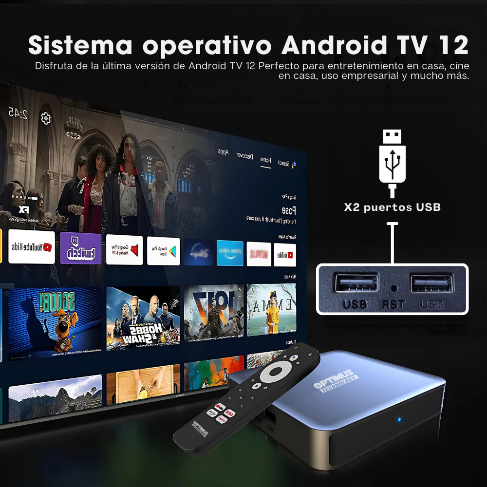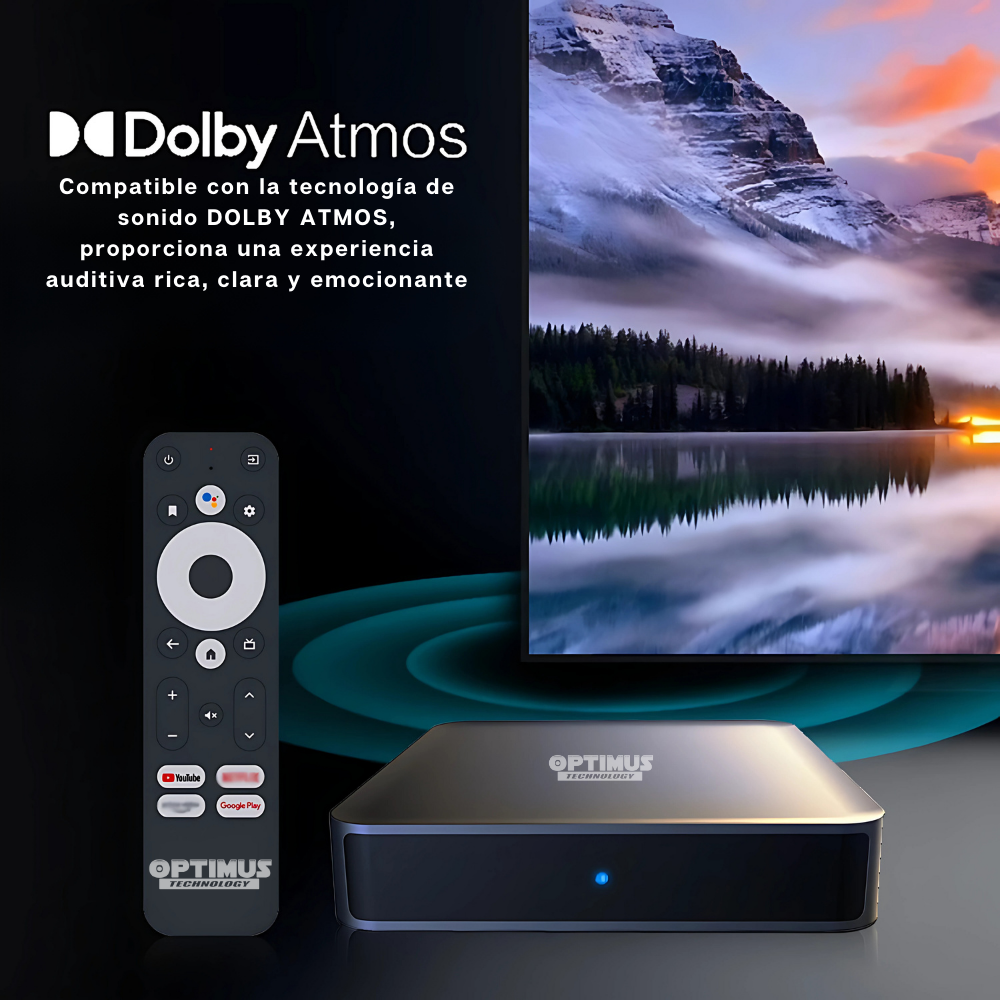 El OPTIMUS TV GD2 corre en Android TV 12 Certificado por google, compatible con la gran mayoría de aplicaciones Android, para satisfacer las necesidades de diferentes usuarios, juegos, videos, etc. Soporta decodificación de video, lo que te ofrece imágenes de alta definición y reproducción de video fluida. Compatibilidad con las tecnologías HDR 10, HDR10+, HLG y Dolby Vision.
