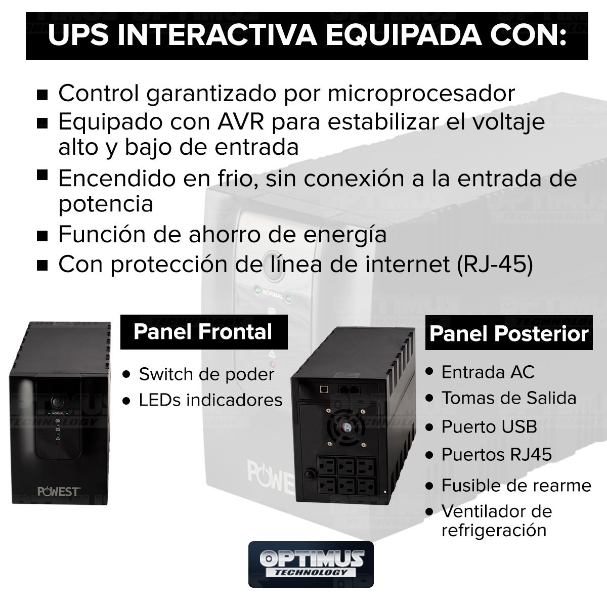 La Nueva MICRONET 2000VA de OPTIMUS™ es una UPS interactiva que protege tus dispositivos eléctricos de apagones, variaciones de voltaje, 6 Salidas con protección contra sobrecorrientes. Con respaldo independiente de red eléctrica en caso de fallos de luz!