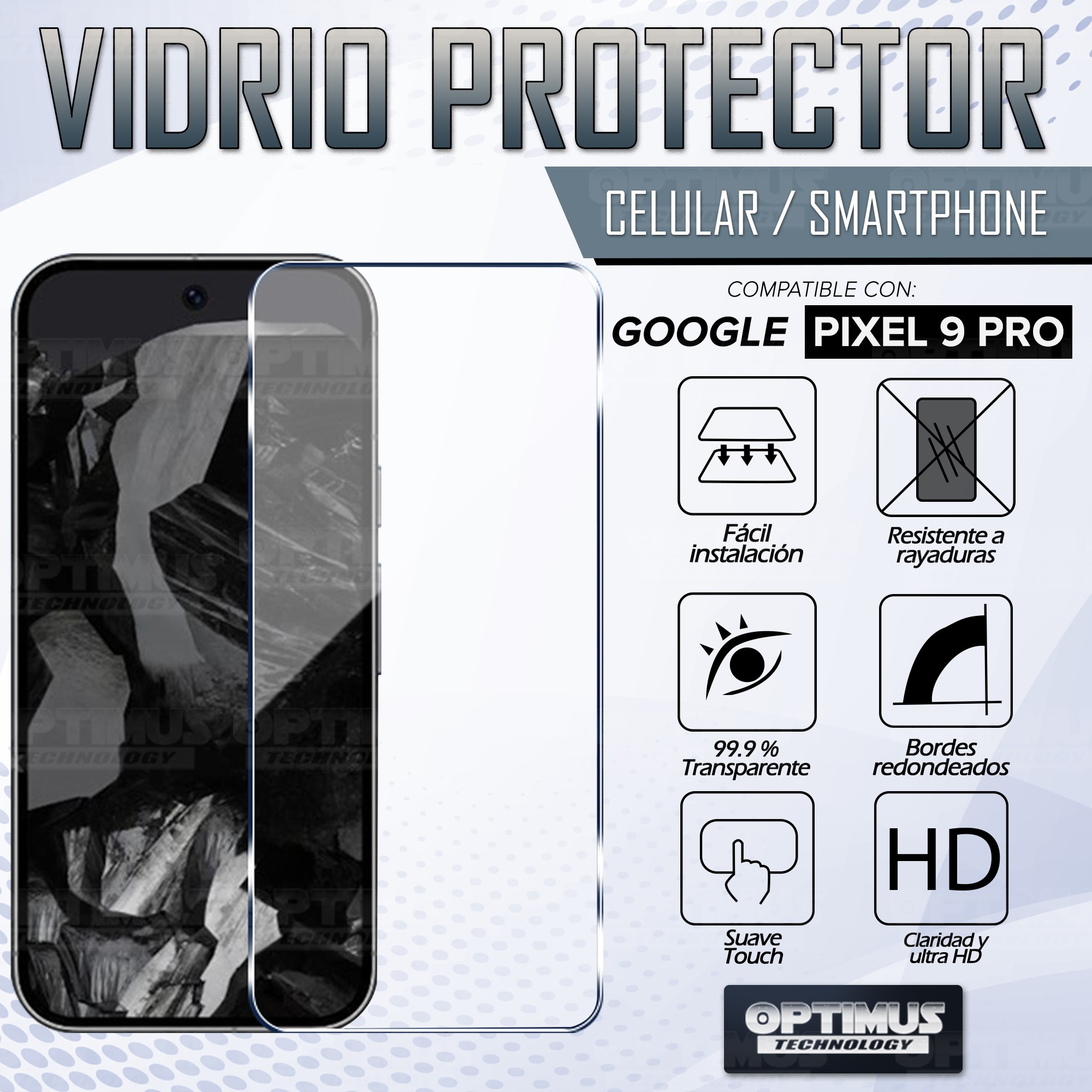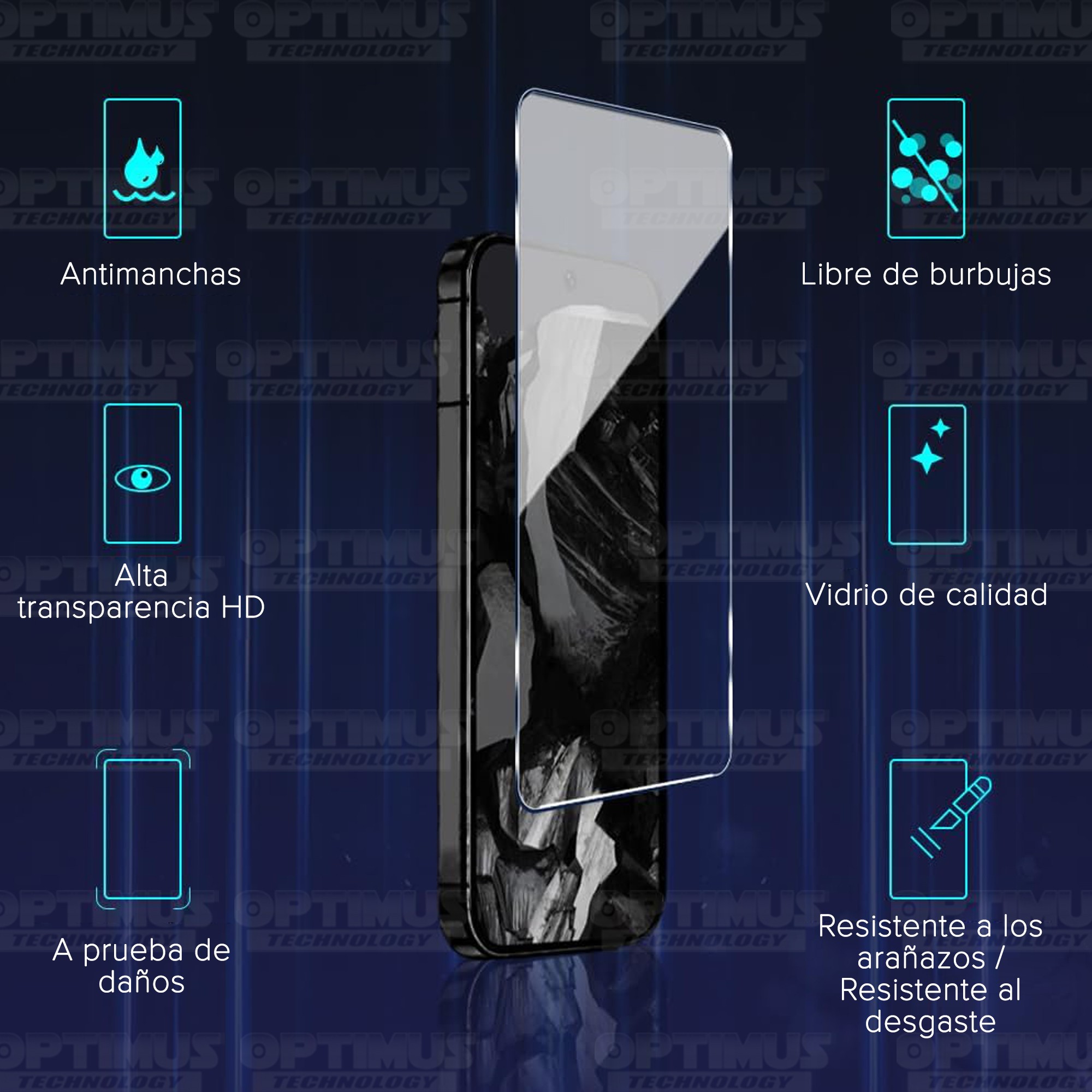 Los ¡Nuevos protectores de pantalla VIDRIO-T™ de OPTIMUS™ son resistentes a al agua, polvo, arañazos y transparencia al 100%!