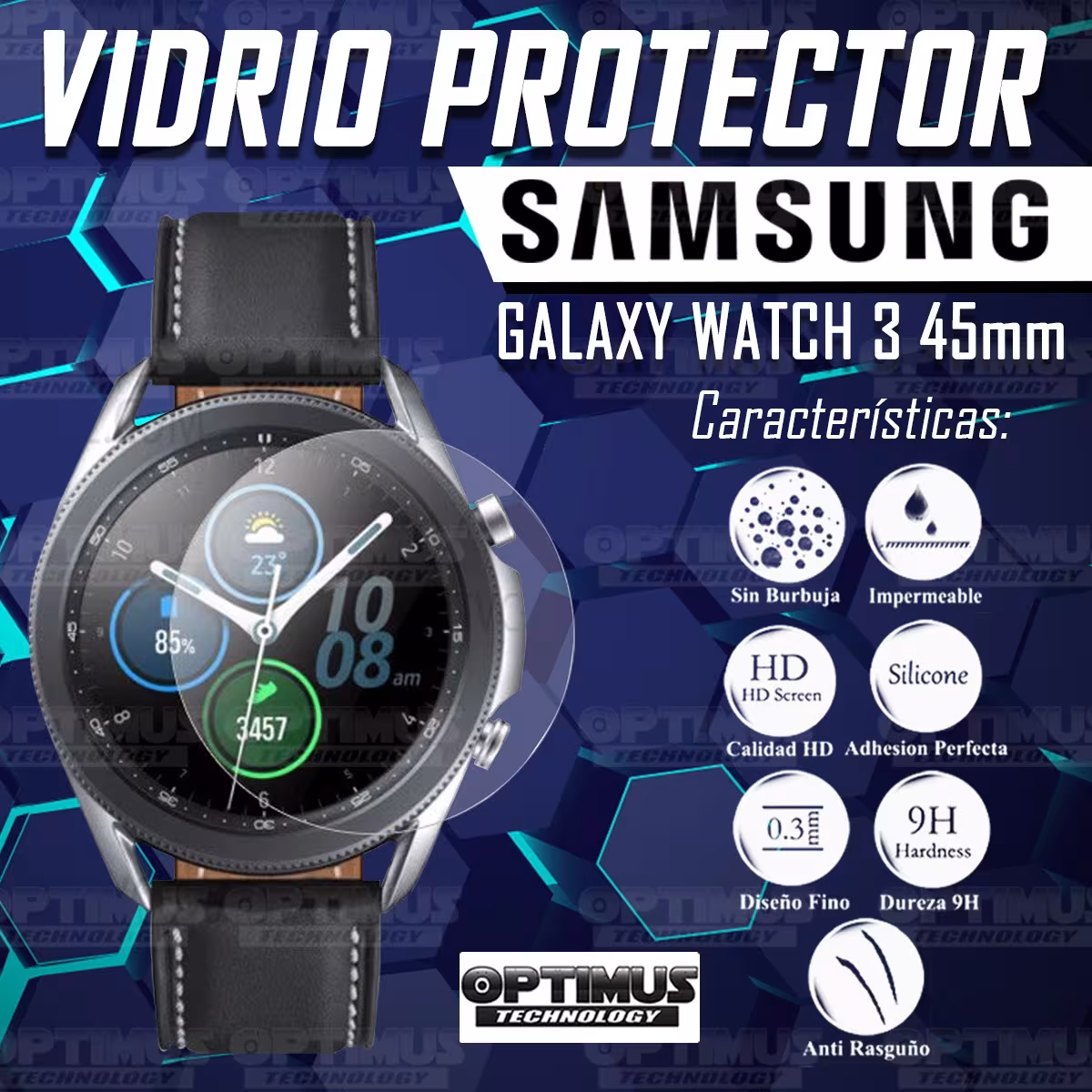 Vidrio Cristal Templado Protector Reloj Inteligente Samsung Galaxy Watch 3 41mm | OPTIMUS TECHNOLOGY™ | VTP-SS-GXY-41 |