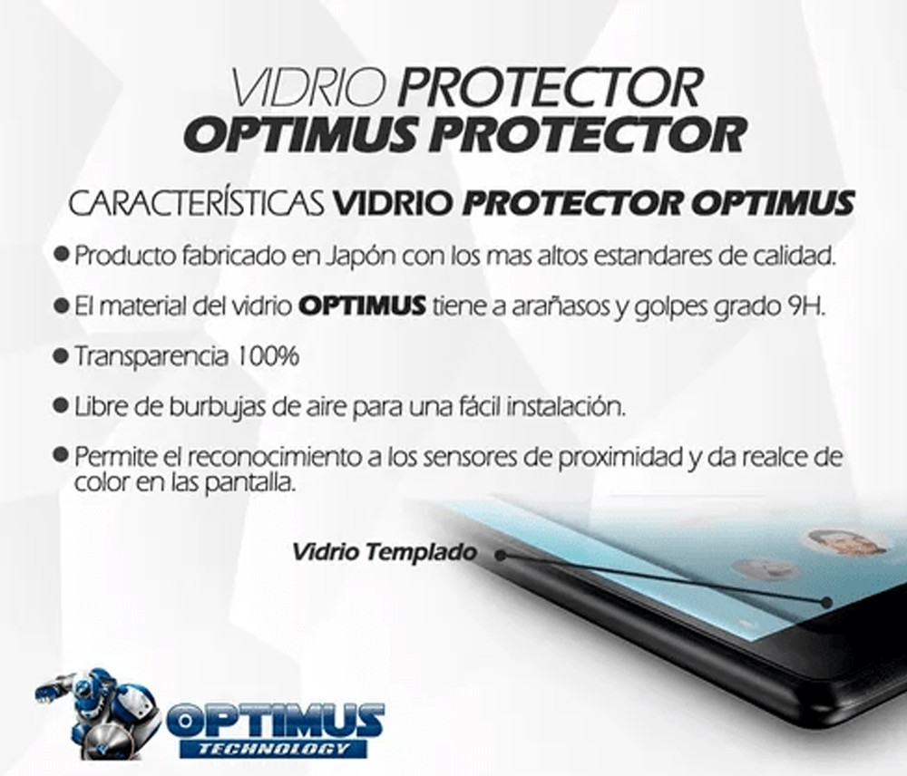 Los ¡Nuevos protectores de pantalla VIDRIO-T™ de OPTIMUS™ son resistentes a al agua, polvo, arañazos y transparencia al 100%!