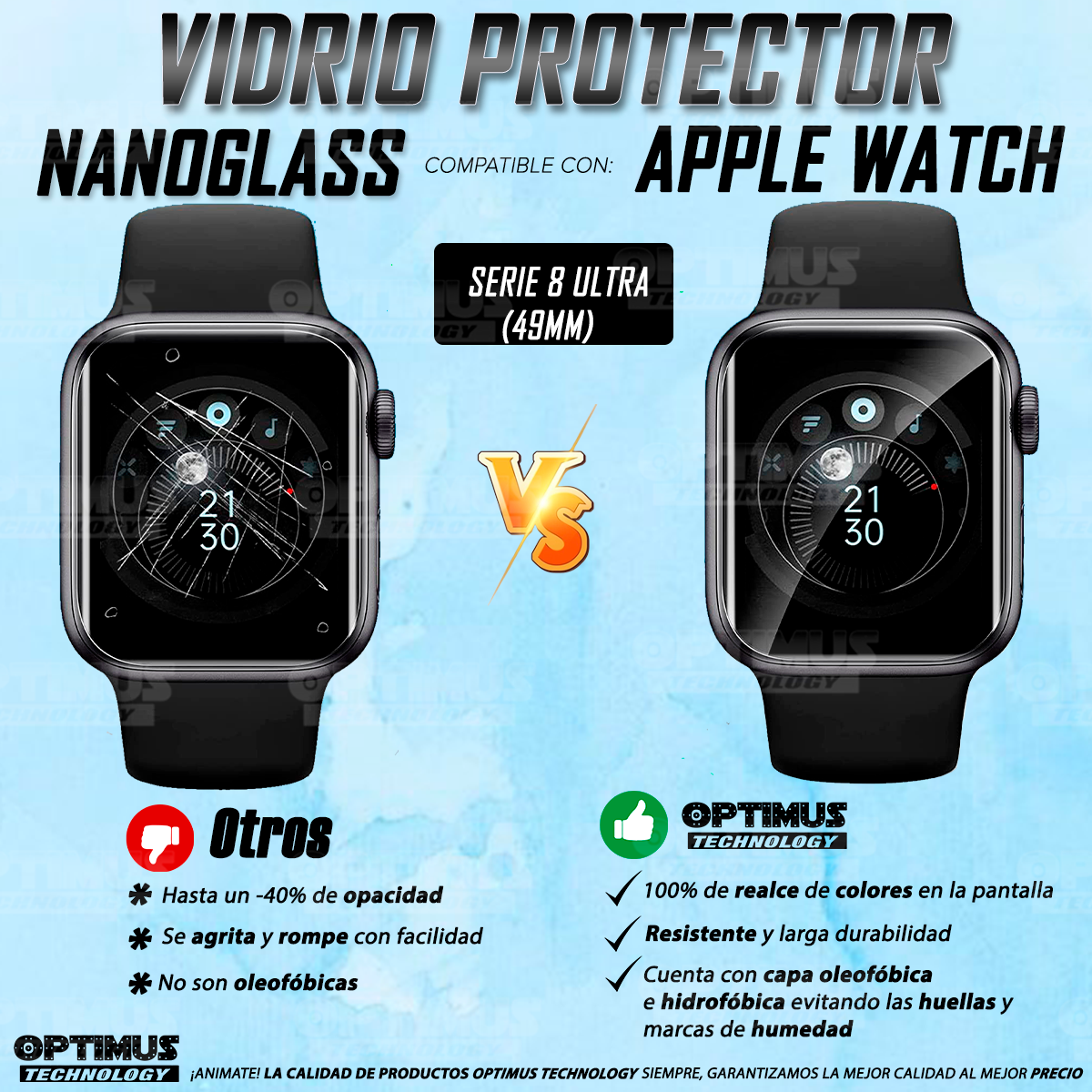 Los ¡Nuevos protectores de pantalla VIDRIO-T Nano Glass™ de OPTIMUS™ son resistentes a al agua, polvo, arañazos y transparencia al 100%!