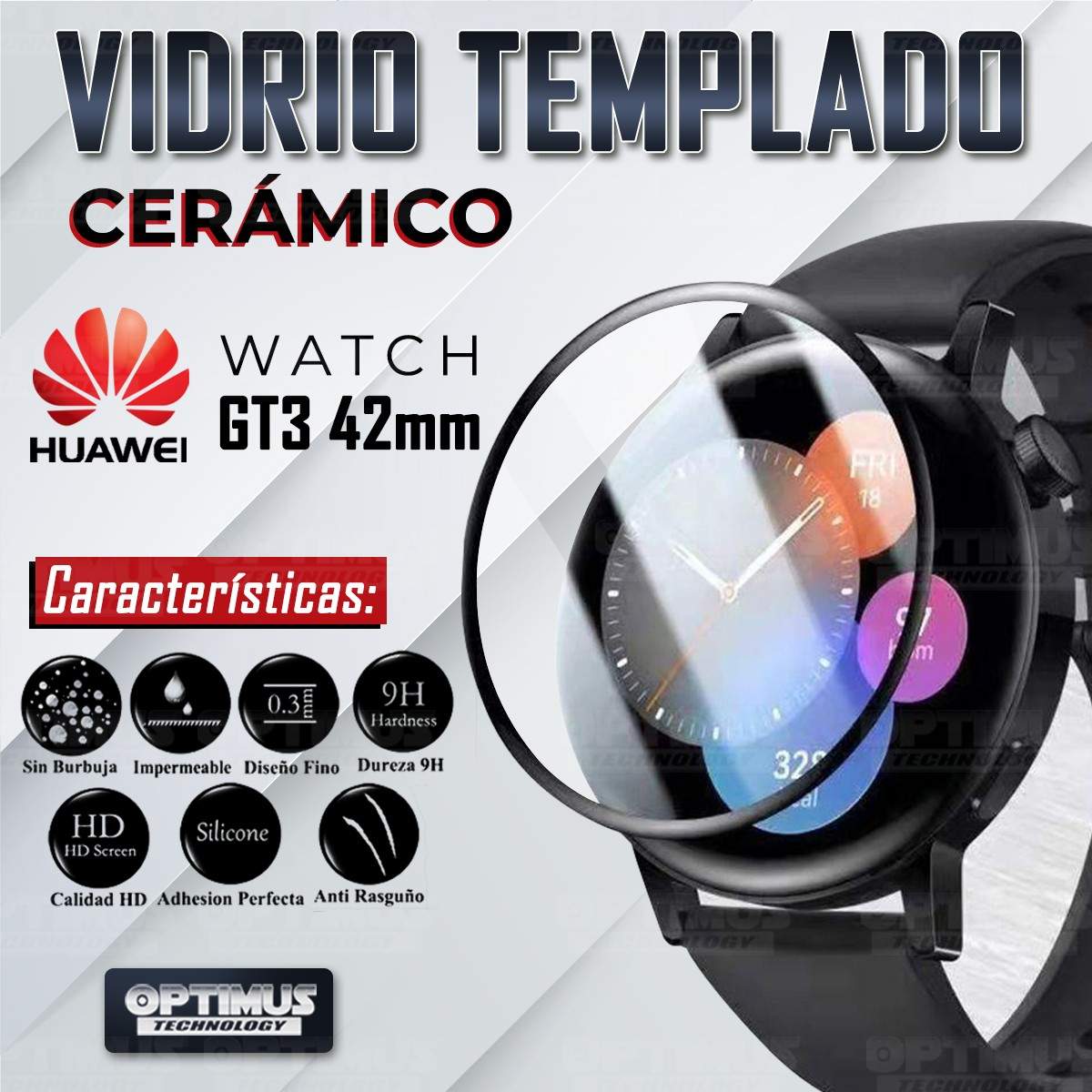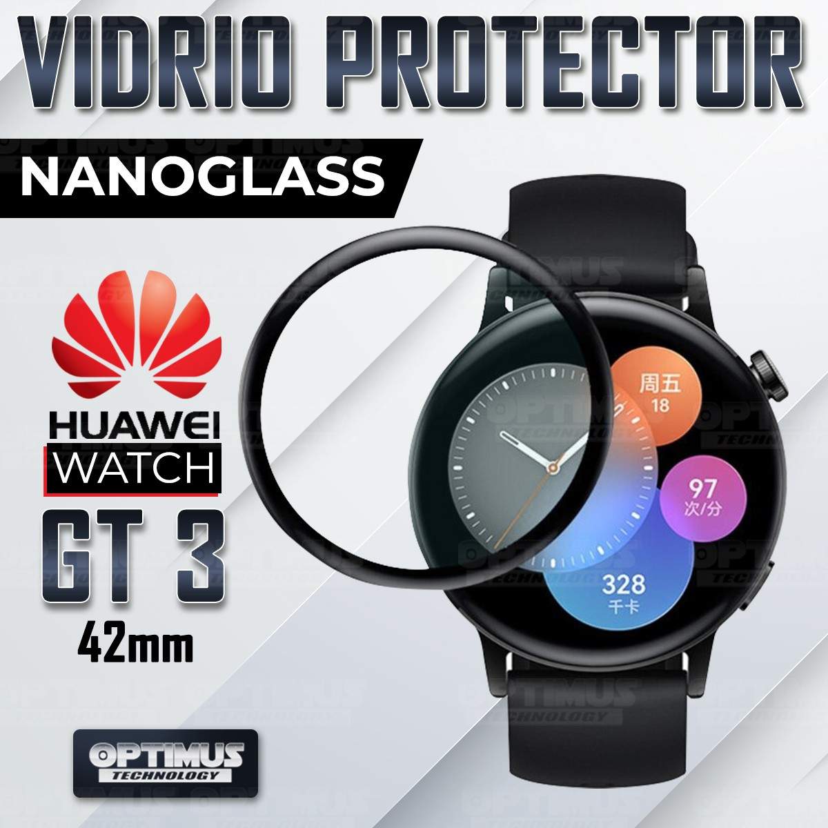 Vidrio Templado Cerámico Nanoglass Para Reloj Smartwatch Huawei Watch GT3 46mm | OPTIMUS TECHNOLOGY™ | VTP-CR-HW-GT3-46 |