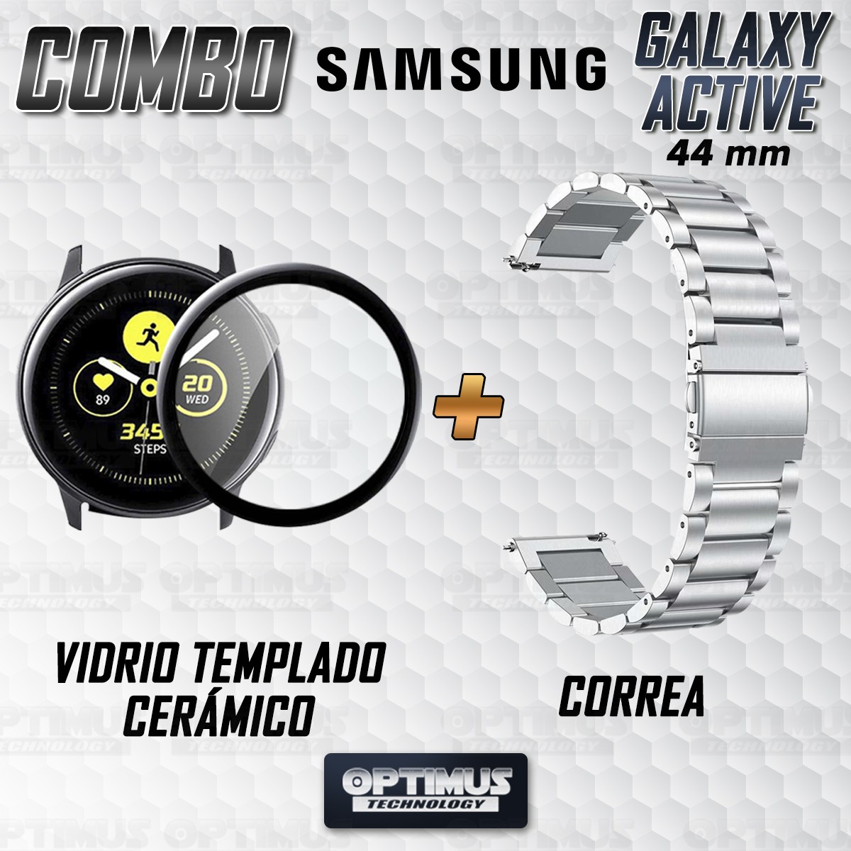 Banda Acero Inoxidable para Samsung Galaxy Active 44mm + Vidrio Templado cerámico Samsung Galaxy Active 44mm