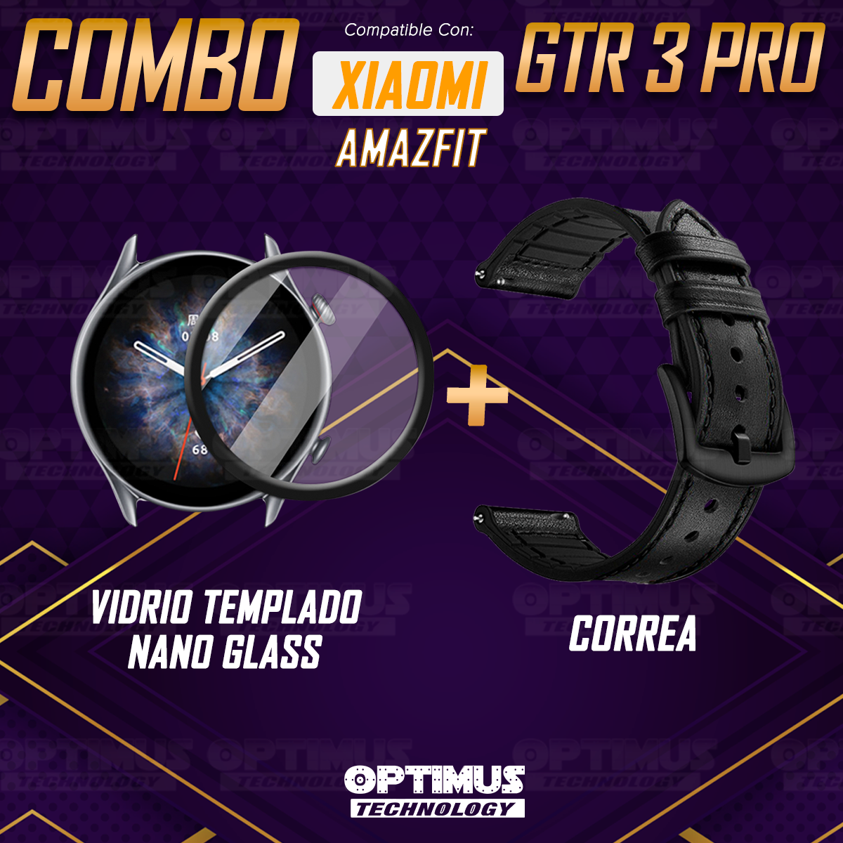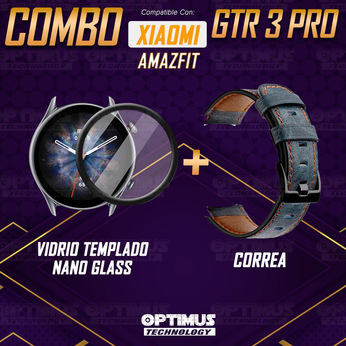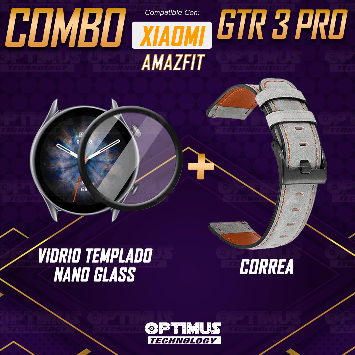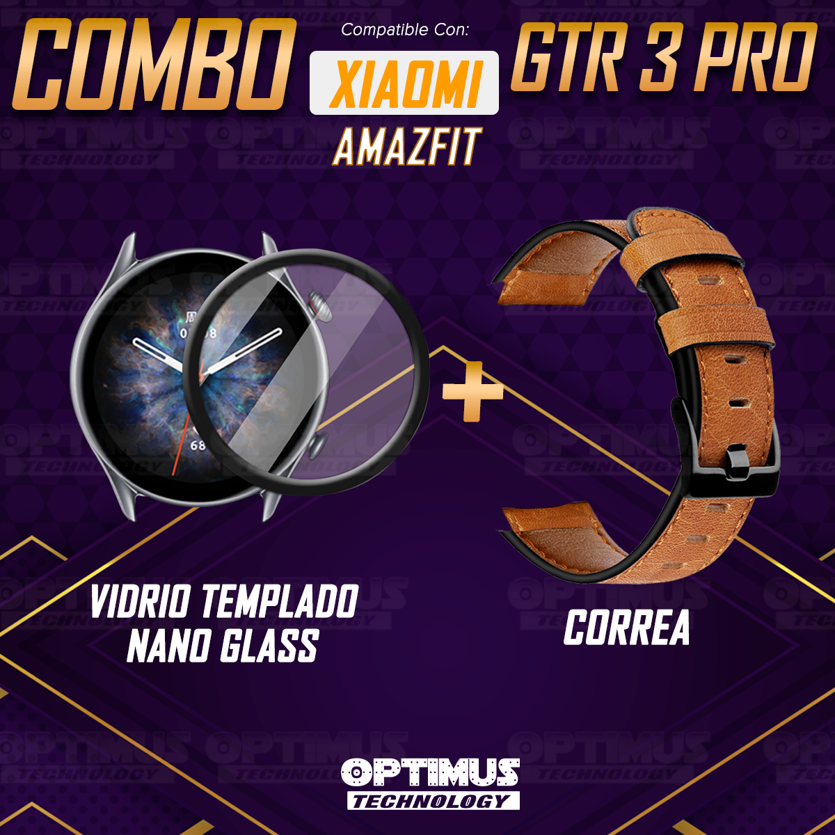 Vidrio Templado Nano Glass Y Correa de cuero Smartwatch Reloj Inteligente para Xiaomi AmazFit GTR 3 PRO